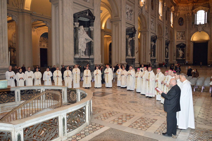 Zuvor hatten die Bischöfe Donnerstagfrüh in der Basilika Santa Maria Maggiore die Messe gefeiert und gemeinsam für Papst Franziskus gebetet. Bischof Ludwig Schwarz erinnerte in seiner Predigt daran, dass die Basilika auf dem römischen Esquilin-Hügel und das dort verehrte Marien-Gnadenbild "Salus Populi Romani" das erste Ziel von Papst Franziskus am Tag nach seiner Wahl war.