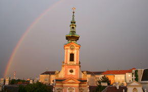Im Zeichen des Regenbogens: Pfarrkirche Schwechat.