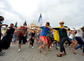Papst Franziskus lud auf dem "Feld der Barmherzigkeit" Jugendliche ein, mit ihm im Papamobil zu fahren.