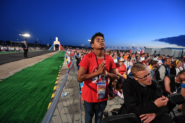 Es sei ein überwältigendes Gefühl, in dieser Menge an Menschen zu stehen, erzählt Maria, die mit der Gemeinschaft Emmanuel gekommen ist. „Wow, da sind so viele Menschen! Doch im Unterschied zu einem Rockkonzert oder einer Europameisterschaft haben wir beim Weltjugendtag alle dasselbe Ziel: Gott.“ Der Weg zum Höhepunkt des Weltjugendtages, zur Nachtvigil am Wochenende, war ein kilometerlangen Fußmarsch unter praller Sonne, auf dem die Schotterwege aufgrund der Menschenmengen oder Sicherheitskontrollen zu eng wurden und die öffentlichen Verkehrsmittel überlastet waren. Doch die Jugendlichen schwangen ihre Fahnen mit Motiven ihrer Nationen oder Bewegungen, sie stimmten Lieder und Gebete an oder – für viele das Schönste – sie lernten sich kennen. „Hier kommt man mit Freude und Offenheit mit anderen Menschen in Kontakt“, erzählt Barbara, die mit den Salesianern Don Boscos angereist ist. Die Stimmung und die Gemeinschaft, die vielen Gleichaltrigen, die die eigene Freude am Glauben teilen, motivierten die Jugendlichen zum Durchhalten. Und mehr: Viele Pilger erzählen danach, die Vigil und anschließende eucharistische Nachtanbetung war trotz aller Strapazen der Höhepunkt.