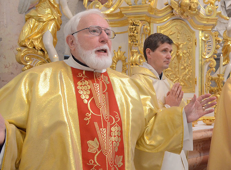 Diakon Franz Eckert beim Friedensgruß in Klein Mariazell.