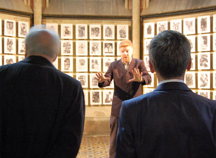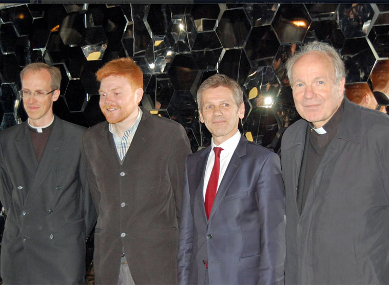 Minister Ostermayer erzählte, die Ausstellung bereits einmal unangekündigt mit seiner Frau besucht zu haben und die ebenso spontane eineinhalbstündige Führung durch David Rastas sehr genossen zu haben. Er sei gerne wiedergekommen, die Erzdiözese Wien würdigte er für das mutige Projekt - "eine faszinierende Ausstellung, die Kunst und Raum in deren Gegensätzlichkeit vereint".