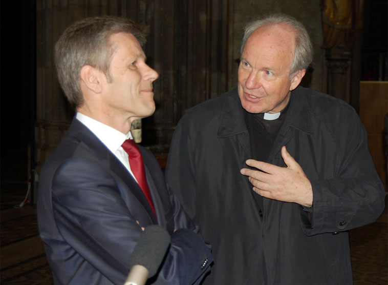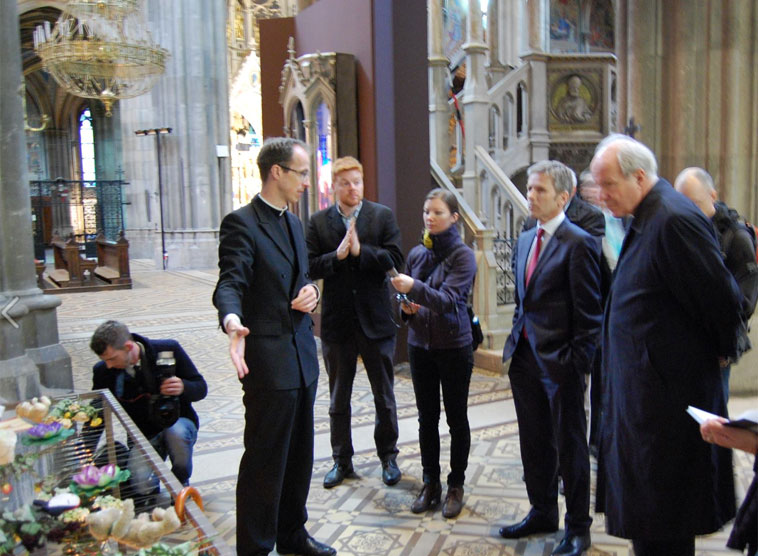 Kardinal Schönborn und Kulturminister Ostermayer zeigten sich beeindruckt von den Beispielen zeitgenössischer Kunst im Kontext einer neugotischen Großkirche.