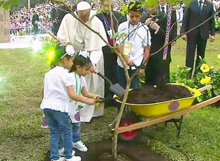 Im Rahmen der kleinen Zeremonie wurde auch ein "Baum des Friedens" gepflanzt. Der Papst reichte die Erde an zwei Kinder weiter; sie sollten die Zukunft des Landes ohne Krieg und Gewalt symbolisieren.