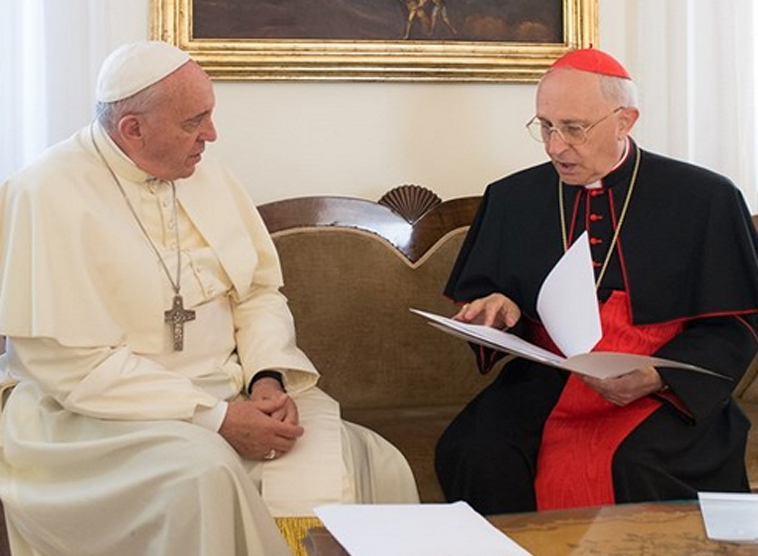 Papst Franziskus und der Präfekt der Evangelisierungskongregation, Kardinal Fernando Filoni.