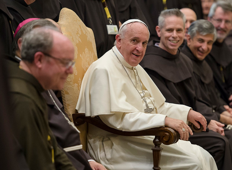 Papst Franziskus hat die franziskanischen Orden zu radikalem Einsatz für Arme und für die Schöpfung aufgerufen. Als "Minderbrüder" sollten sie nach der Weisung ihres Gründers, des heiligen Franz von Assisi (1181/82-2016), nichts für sich behalten und ihr Leben mit den Ausgegrenzten teilen, sagte er bei einem Treffen mit Franziskanern, Minoriten und Kapuzinern sowie den Ordensgemeinschaften im Verbund der "Franziskanischen Familie" (Regulierte Dritte Orden) am Donnerstag, 23. Nov. 2017. Dabei verwies der Papst auch auf die Verbindung "zwischen Wirtschaft, Entwicklung, Sorge für die Schöpfung und der 'Option für die Armen'".
