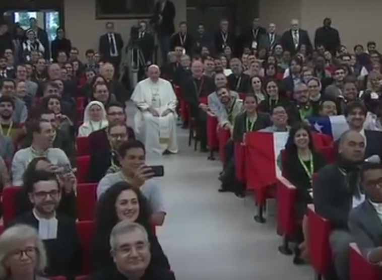 „Danke, dass ihr die Einladung angenommen habt!“ Am Anfang der Papstansprache stand der Dank dafür, dass die jungen Menschen sich auf das Experiment einlassen, sich durch eine Tagung an der Vorbereitung der kommenden Bischofssynode zu beteiligen.
