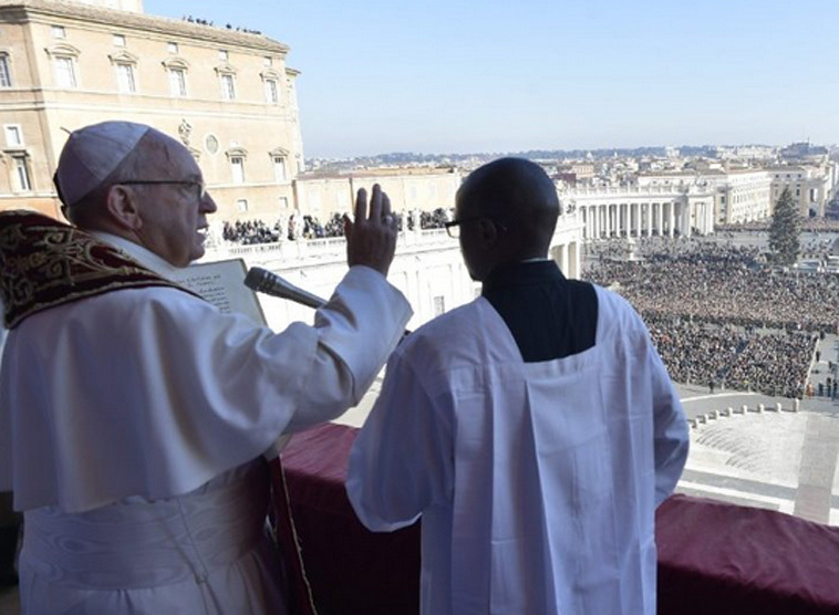 Ein Bataillon der italienischen Streitkräfte und eine Formation der Päpstlichen Schweizergarde spielten die italienische und die vatikanische Hymne. Der frühere Präsident des Päpstlichen Friedens- und Migrantenrats, Kardinal Renato Martino, wies vor dem lateinischen Segen des Papstes darauf hin, dass dieser Segen auch für alle in den Medien zugeschalteten Menschen gelte und mit ihm ein Ablass verbunden sei. Seit dem Mittelalter erteilen Päpste den Segen "Urbi et Orbi", der der Stadt Rom und dem ganzen Erdkreis gilt.