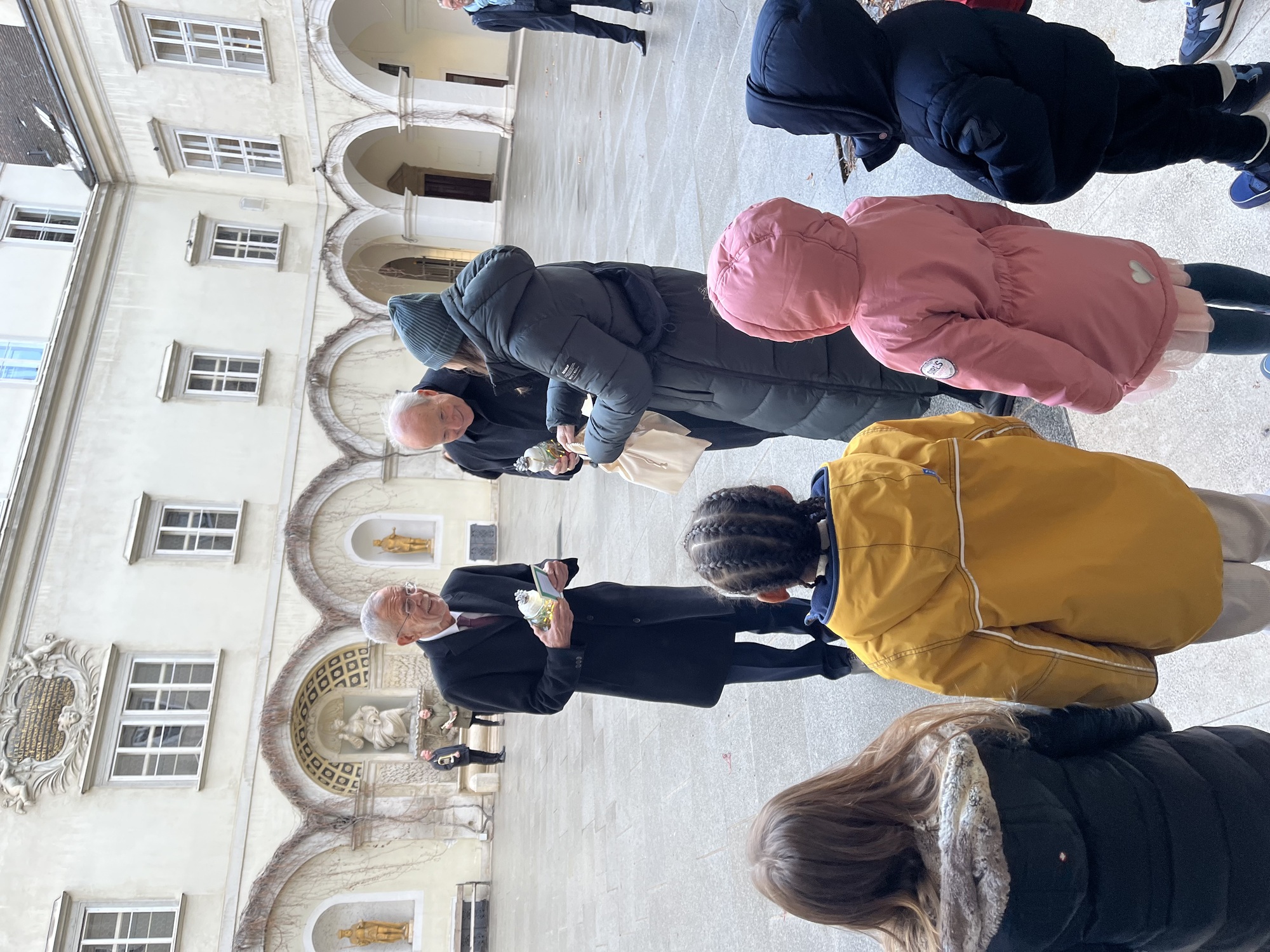 Ich ging die Stiegen hinauf. Der Herr Kardinal kam mir entgegen. Er fragte mich, wo ich denn arbeite. Ich antwortete: in der Kontrollstelle. Er lobte mich dafür, dass ich 5. Stockwerke zu Fuß hinauf ging!