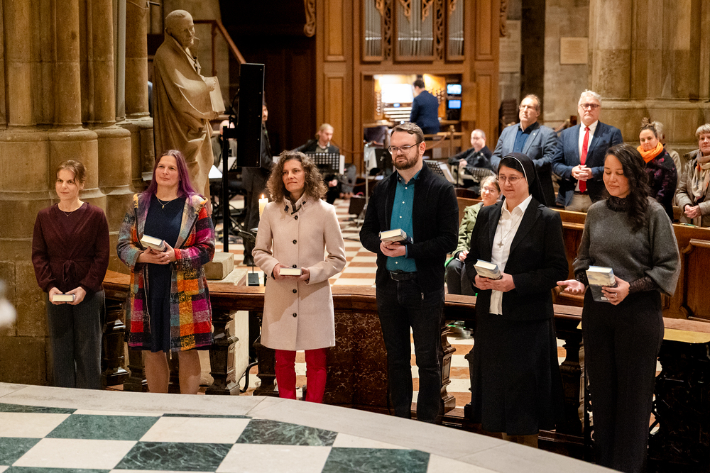 Am Donnerstag, 2. Oktober 2025, wurden neun Frauen und drei Männer vom Apostolischen Administrator Josef Grünwidl im Stephansdom als PastoralassistentInnen, KrankenhausseelsorgerInnen und PflegeheimseelsorgerInnen in den diözesanen Dienst gesendet. Wir waren mit der Kamera dabei.