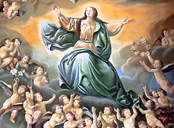 Die vielen Darstellungen von “Maria Himmelfahrt” zeigen meist die Apostel um ihr leeres Grab. Der Tod konnte diesen Leib nicht festhalten, der uns Christus, das Leben, geboren hat.