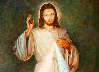 Warum ich das gerade heute erwähne? Weil Sr. Faustina immer wieder als Botschaft des Himmels die Aufforderung erhielt, zu sagen, der Sonntag nach Ostern, der sogenannte "weiße Sonntag" solle als "Fest der Barmherzigkeit" gefeiert werden. Und tatsächlich hat der Heilige Vater den "weißen Sonntag" des großen Jubiläums 2000, zum ersten Mal als "Sonntag der Barmherzigkeit" gefeiert. Daher auch heute das Bild, das nach Sr. Faustinas Angaben gemacht wurde: Jesus als Quelle der Barmherzigkeit.