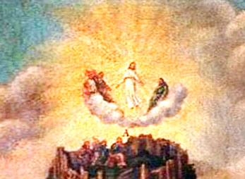 Jesu „Verklärung“ war anderer Art. Seine Gestalt hat sich nicht äußerlich gewandelt, sondern von innen her zu leuchten begonnen. Sein „inneres Licht“ wurde für eine Weile in seinem Leib sichtbar. Sein Gottsein leuchtete in seinem Menschsein auf. Die Stimme Gottes nennt den Grund für diese „Metamorphose“: „Dieser ist mein geliebter Sohn. Auf ihn sollt ihr hören“. Jesus ist ganz und gar, durch und durch mit Gott verbunden, ja er ist selber Gottes Sohn. Für eine kurze Zeit dürfen die drei Zeugen sehen, wie Jesus Gottes Glanz in seiner Menschengestalt verborgen trägt.