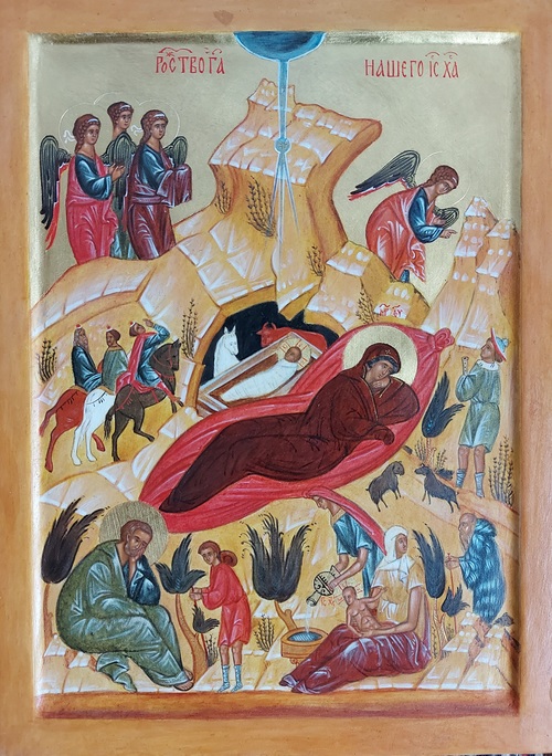 Was sollen wir dir darbringen, o Christus, da du erschienen auf Erden als Mensch um unseretwillen? Ein jedes der Geschöpfe, die durch dich geworden, bringt dir die Dankesgaben dar: Die Engel den Hymnus, die Himmel den Stern, die Magier die Geschenke, die Hirten das Staunen, die Erde die Höhle, die Wüste die Krippe, wir aber eine Jungfrau als Mutter. Du urewiger Gott, erbarme dich unser.