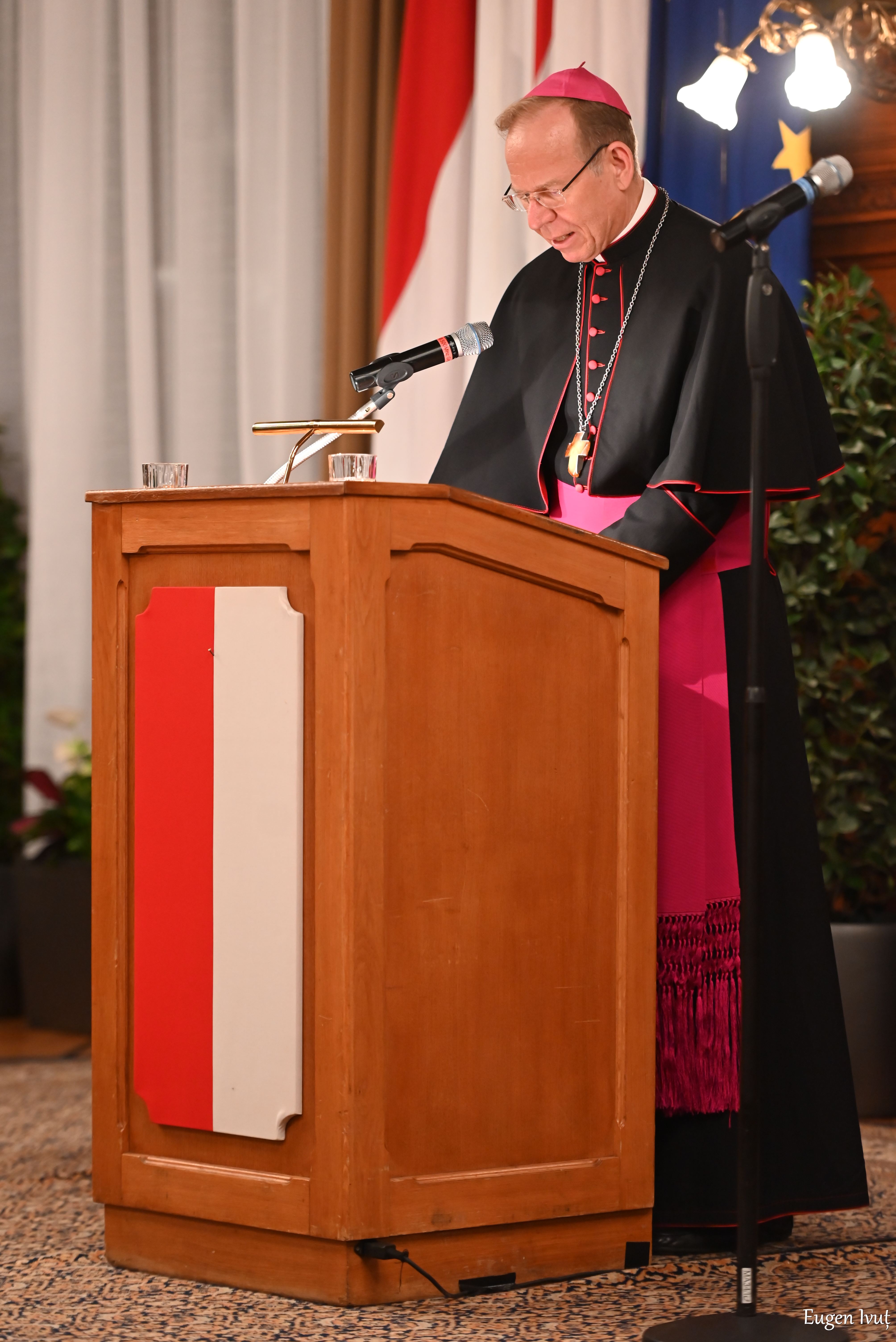 Grusas dankte im Namen der Bischöfe dem Wiener Bürgermeister für seine Gastfreundschaft und würdigte in seiner Rede das gute Verhältnis von Staat und Kirche in Österreich. Wiewohl klar getrennt, arbeite man vertrauensvoll zusammen. Rund 65 Bischöfe der verschiedenen katholischen Ostkirchen sowie zahlreiche weitere Führungskräfte sind zu der Konferenz nach Wien gekommen, die unter der Schirmherrschaft des Rates der Europäischen Bischofskonferenzen (CCEE) steht.