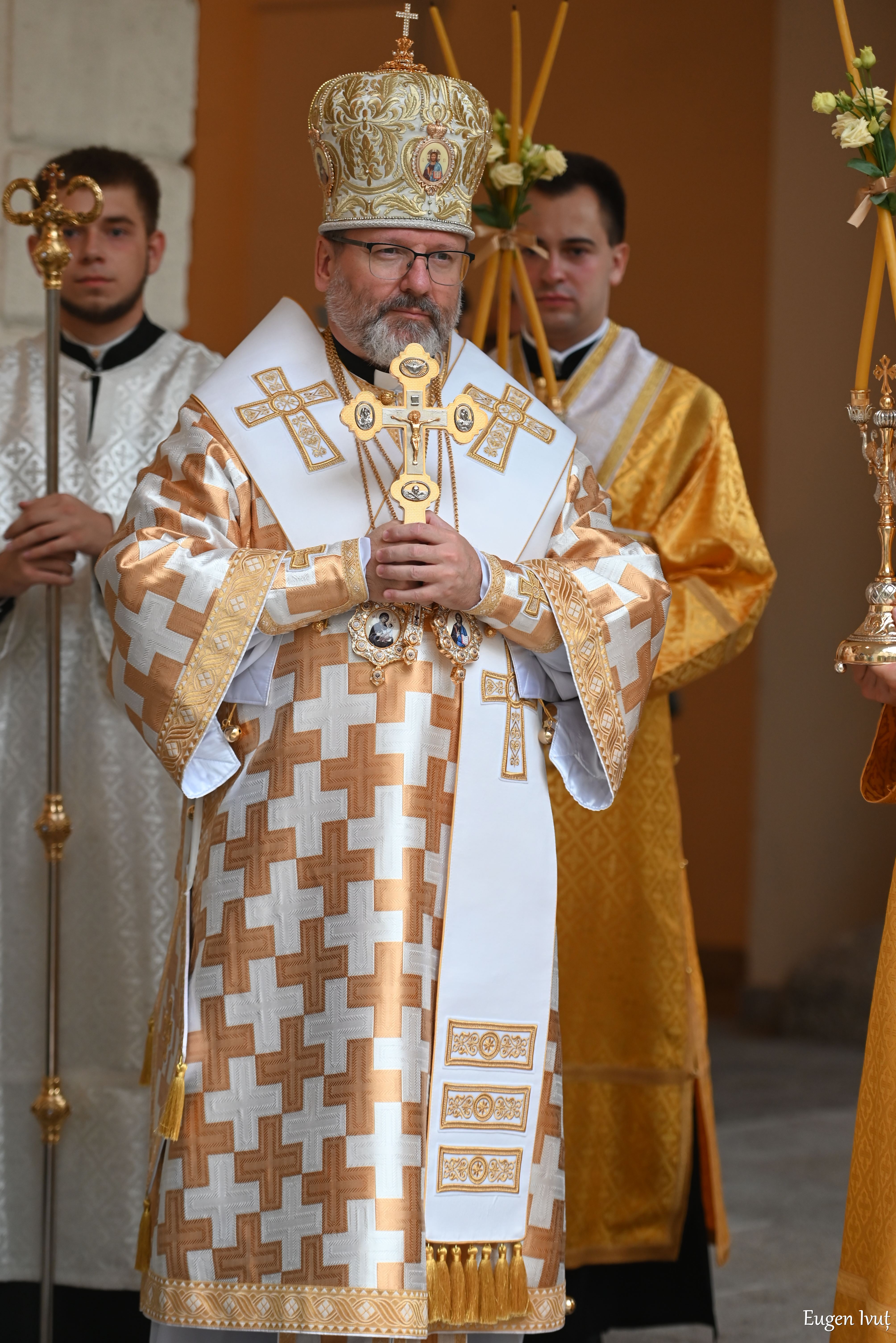 Am Gottesdienst nahmen auch zahlreiche Ukrainerinnen und Ukrainer teil, die in Österreich Zuflucht gefunden haben. Großerzbischof Schewtschuk dankte am Ende des Gottesdienstes Kardinal Schönborn für seine Fürsorge für diese Menschen. Ebenso dankte der Großerzbischof den ukrainischen Priestern, die in Österreich ihren Dienst versehen. Schon am Beginn des Gottesdienstes wurde dem Wiener Ostkirchen-Generalvikar Yuriy Kolasa eine hohe kirchliche Auszeichnung zuteil. Er wurde von Großerzbischof Schewtschuk für seine Verdienste für die katholischen Ostkirchen in Österreich zum Mitrophor ernannt. Er darf künftig die (bischöfliche) Mitra tragen.