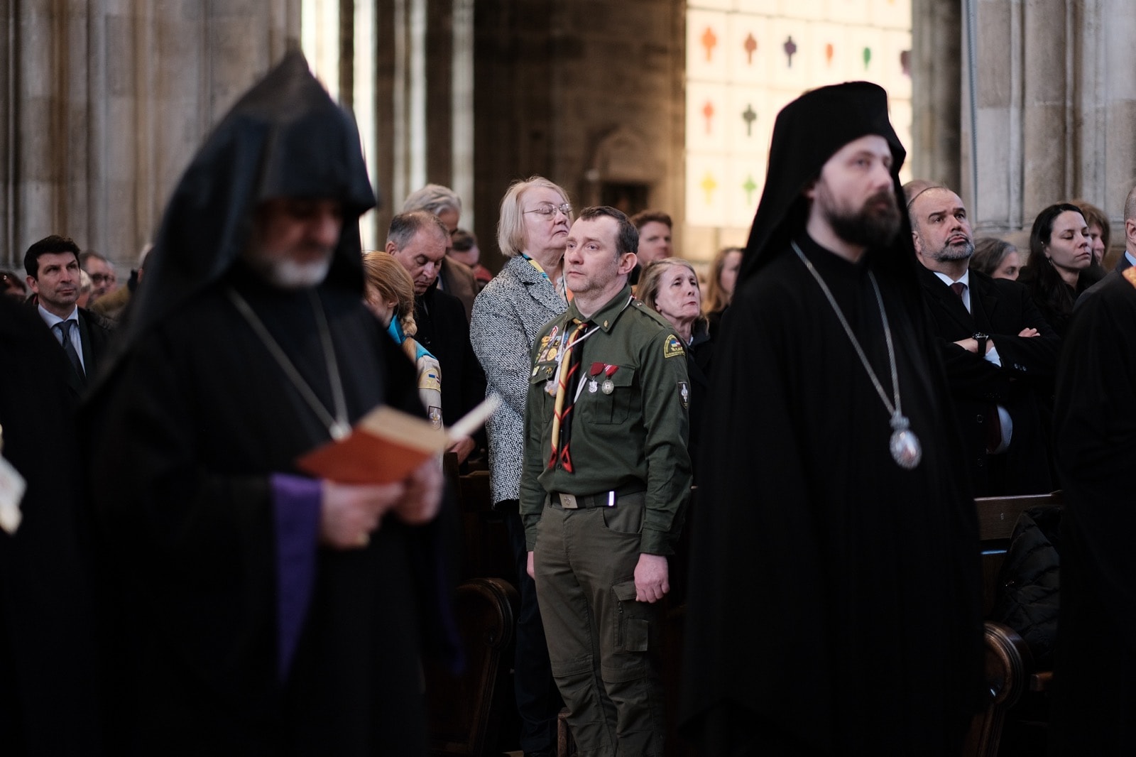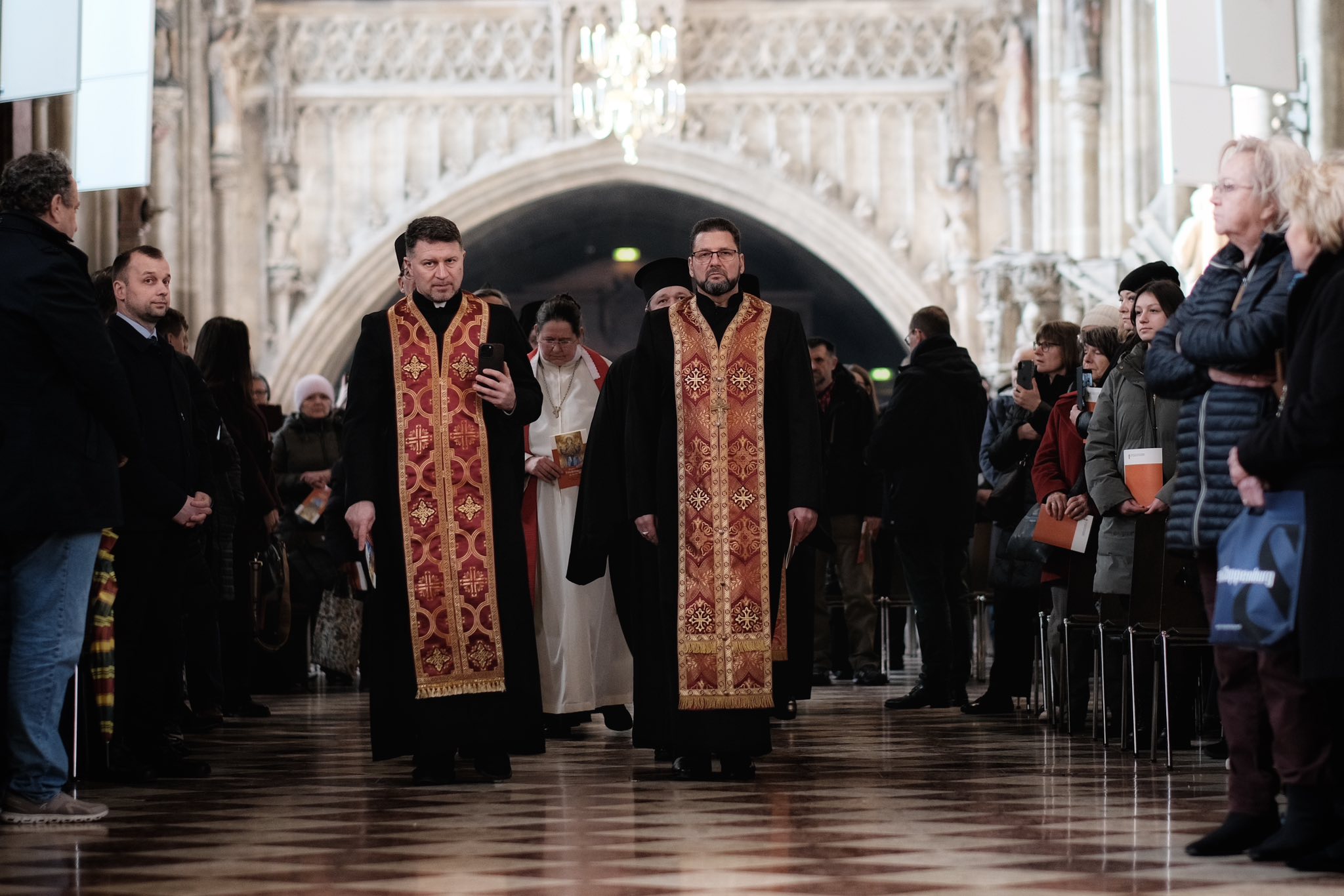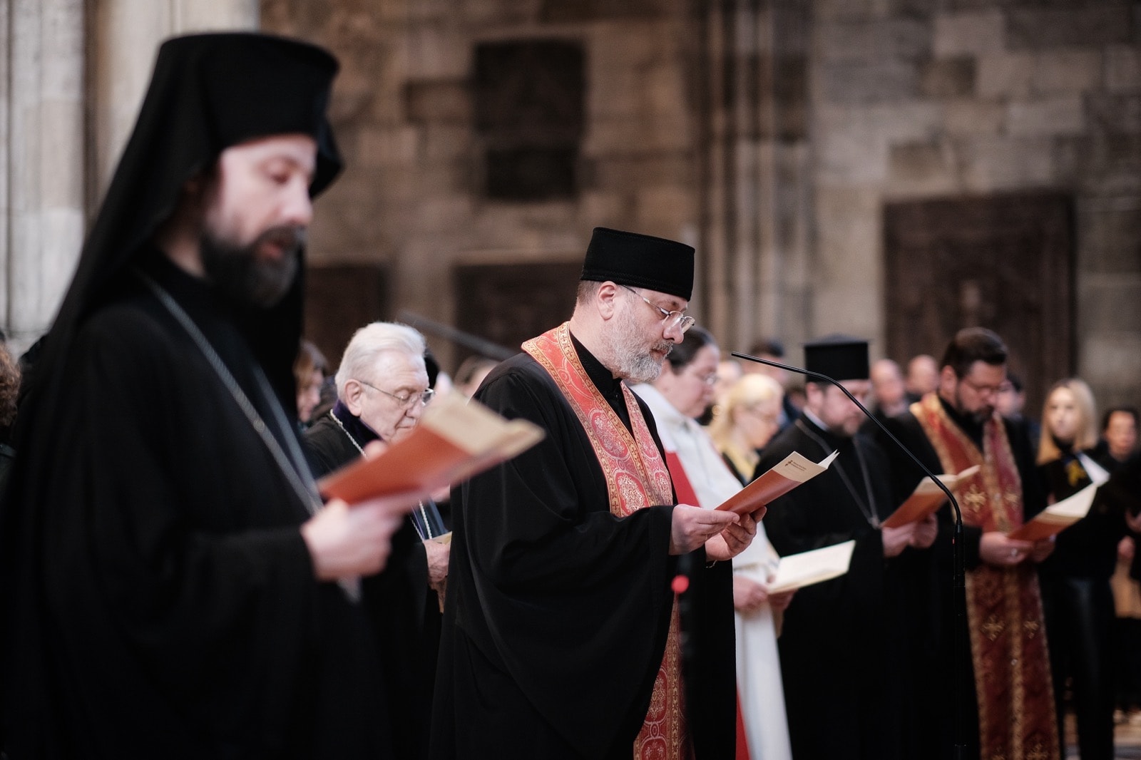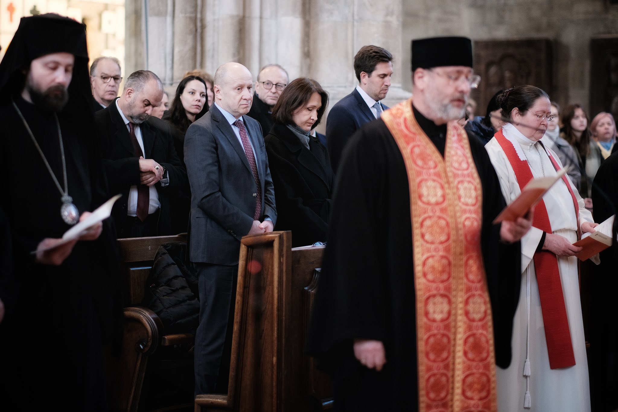 Dem Gebet standen u.a. Ostkirchen-Generalvikar Yuriy Kolasa, der armenisch-apostolische Bischof und Vorsitzende des Ökumenischen Rates der Kirchen in Österreich, Tiran Petrosyan, und der griechisch-orthodoxe Metropolit Arsenios (Kardamakis) vor; weiters der griechisch-orthodoxe Weihbischof Maximos (Rudko), der syrisch-orthodoxe Chorepiskopos Emanuel Aydin, die altkatholische Vikarin Dorothee Hahn und der rumänisch-orthodoxe Bischofsvikar Nicolae Dura sowie zahlreiche Priester der ukrainisch-katholischen Kirche. Auch der Wiener Weihbischof Franz Scharl feierte den Gottesdienst mit.
