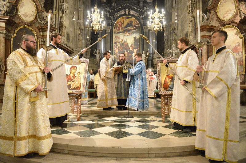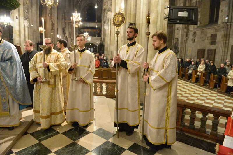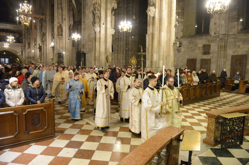 Im Rahmen des alljährlichen Priestertages wurde am Samstag, 9. Dezember 2017 im Stephansdom eine pontifikale Göttliche Liturgie unseres hl. Vaters des hl. Johannes Chrysostomus, unter Beisein des Ordinarius des byzantinischen Ordinariats von Österreich, Christoph Kardinal Schönborn zelebriert. Der 9. Dezember ist in vielen Ostkirchen das Fest der Empfängnis der Anna, der Mutter der Gottesgebärerin und immerwährenden Jungfrau Maria, und so wurde in der diesjährigen Liturgie dieses Festes gedacht.