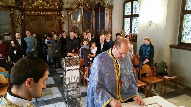 Anwesend waren V. Oleh Kovtun, Seelsorger für die ukr. gr.-kath. Gläubigen in Graz, V. Alexandru Suciu mit Gläubigen der rum.-unierten Gemeinde von Graz und Generalvikar Yuriy Kolasa. Am Ende der Göttlichen Liturgie hat GV Kolasa den neugewählten Kirchenräten feierlich ihre Dekrete überreicht. Mit einer Agape fand der Abend einen gemütlichen Ausklang.