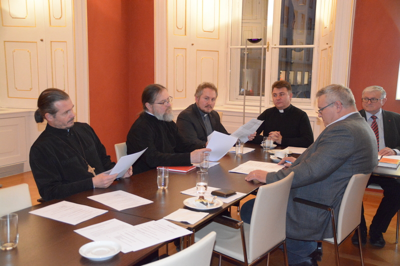 Anschließend beantwortete Kardinal Schönborn mehrere Fragen der Priester und übergab das Wort dann dem besonderen Gast des Nachmittags, dem renommierten Kirchenrechtler Prof. Dr. Helmuth Pree. Dank seiner Expertise im orientalischen Kirchenrecht konnten verschiedene Fragen, die sich aus der Besonderheit der Situation der griechisch-katholischen Kirche in Österreich ergeben, besprochen werden, insbesondere Fragen, die eventuelle Pfarrgründungen betreffen.