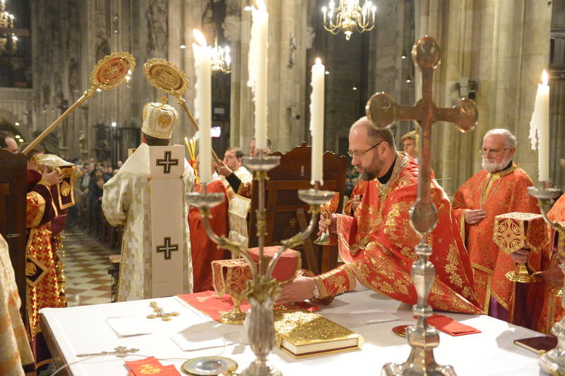 Im Zeichen des Gebets um Frieden in der Welt stand am Samstagabend, 12. November 2016 eine byzantinische Göttliche Liturgie im Wiener Stephansdom, der der ukrainische Großerzbischof Swjatoslaw Schewtschuk und Kardinal Christoph Schönborn vorstanden. "Wir beten um Frieden in Syrien und wir beten um Frieden in der Ukraine, wo heute wie vor 100 Jahren Blut vergossen wird", sagte Großerzbischof Schewtschuk wörtlich.