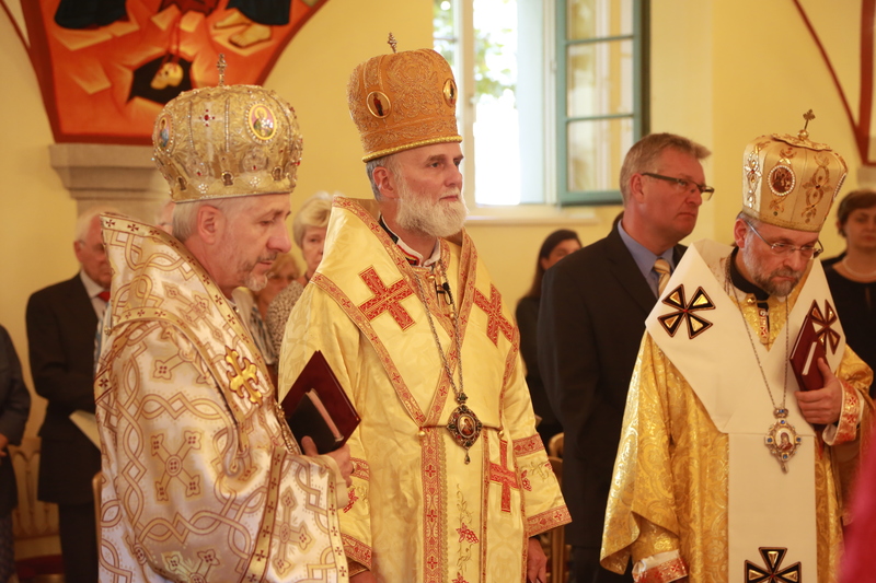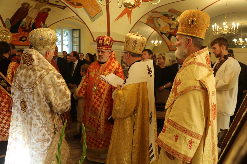 Im Auftrag von Seiner Eminenz Christoph Kardinal Schönborn vollzogen Bischof Borys Gudziak, Eparch von St. Vladimir Le Grand, Paris, Frankreich, Bischof Hlib Lonchyna, Eparch für die ukrainisch-katholischen Gläubigen in Großbritannien, Bischof Florentin Crihalmeanu, griechisch-katholischer Bischof von Cluj-Gherla, Rumänien, und Bischof Peter Rusnák, griechisch-katholischer Bischof von Bratislava, Slowakei, die Weihe. Die Kapelle ist der pankosmischen Erhöhung des kostbaren und lebenspendenden Kreuzes und allen heiligen Märtyrern geweiht. In den Altar wurden Reliquien des hl. Petrus, des hl. Apostels Lukas, des hl. Johannes Chrysostomos, des hl. Thomas von Aquin und des hl. Georg eingesetzt. Musikalisch begleitet wurde die Feier vom Chor der St. Barbara-Kirche und dem Chor der Studenten des ITI.