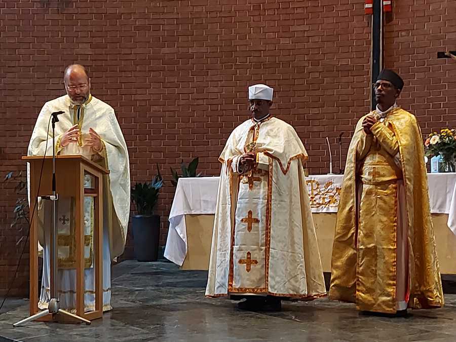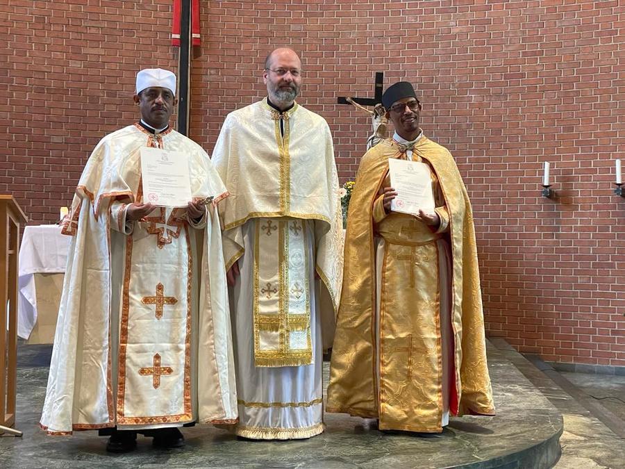 Am Fest der Kreuzerhöhung nach dem Julianischen Kalender feierten die Gläubigen der Äthiopischen Katholischen und der Eritreischen Katholischen Kirche gemeinsam die Göttliche Liturgie im Ge'ez Ritus. Dabei überreichte Generalvikar Yuriy Kolasa den beiden Priestern die offizielle Ernennung zu Seelsorgern.
