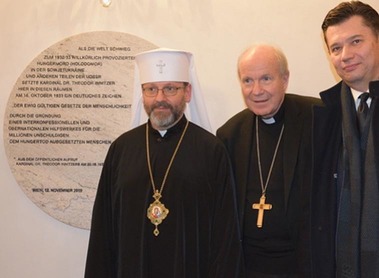 Kardinal Schönborn und Großerzbischof Schewtschuk enthüllten im Wiener Erzbischöflichen Palais Gedenktafel, die an Hilfe Kardinal Innitzers für die Opfer der ukrainischen Hungerkatastrophe ("Holodomor") in den 1930er-Jahren erinnert