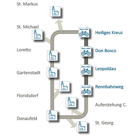 ... besteht aus 2 Teilen - an 4 Bike+Pray-Standorten vorbei und dan zu weiteren Kirchen im 21. ...