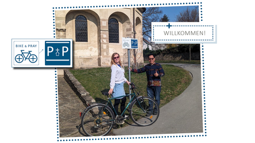 Vor den Kirchen entlang der Bike+Pray-Routen gibt es (nach und nach) Park+Pray Fahrradständer, so dass man auf diesen Bike+Pray - Routen das Radl für ein kurzes Gebet in der Kirche davor abstellen kann.