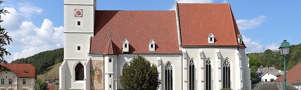 Direkt neben der Kirche von Kirchschlag ist ein Park + Pray Standort.