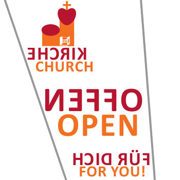 Die Beachflag "Kirche offen für Dich" kann überall dort helfen, auf die offene Kirche hinzuweisen, wo man es sonst übersehen würde, weil man sich dran gewöhnt hat. Egal ob immer offfen und nur an einem Tag etwas Spezielles, wie ein Tag der offenen Türe, KirchenDur, Park+Pray-Eröffnung, oder zum ersten Mal offen, wenn nicht ein Gottesdienst stattfindet.