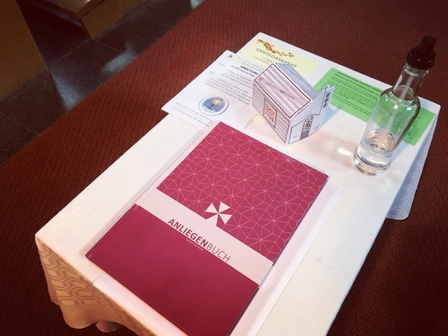 In offenen Kirchen wird einem das erste Anliegenbuch gratis zur Verfügung gestellt, bei weiteren, oder wenn die Kirche nicht ganz offen steht, erbitten wir einen Selbstkostenbeitrag von €12.