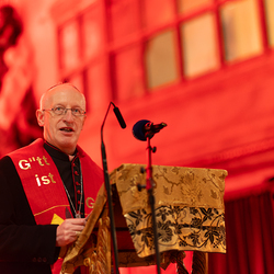 Dompfarrer Toni Faber bei der Präsentation des Kunstwerkes