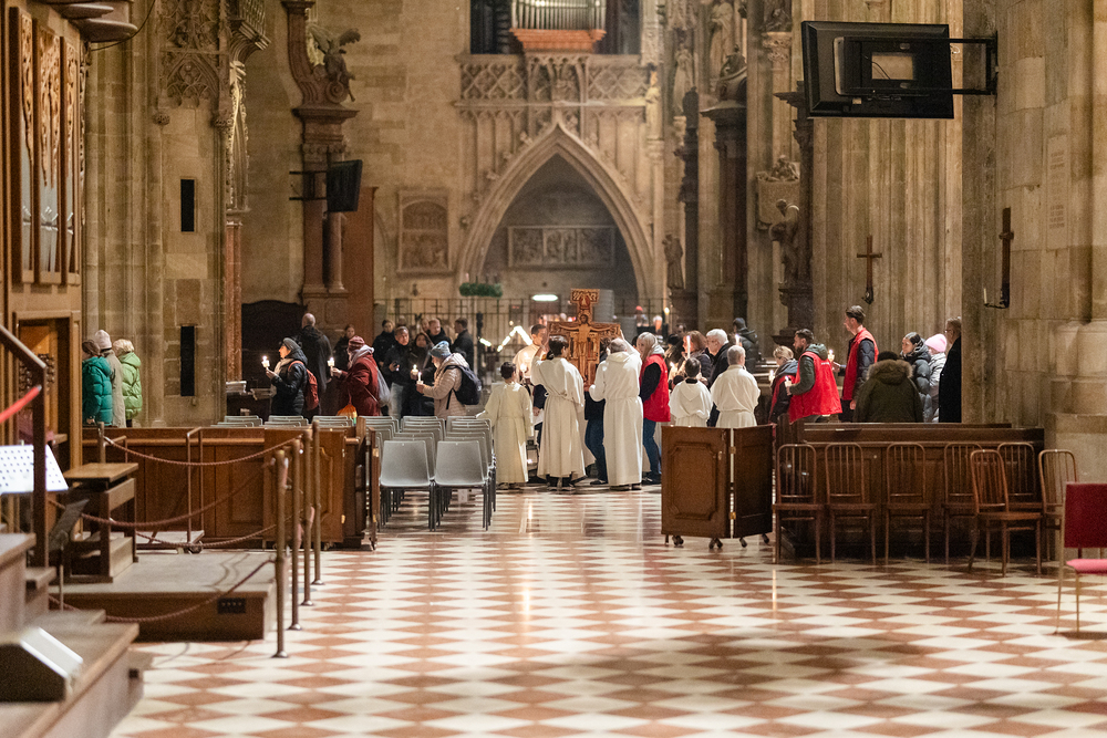 Kardinal Schönborn feierte gemeinsam mit armutsbetroffenen Menschen, Flüchtlingen sowie ehrenamtlichen Helferinnen und Helfern aus Pfarren und sozialen Organisationen der Erzdiözese Wien den von Papst Franziskus ausgerufenen „Welttag der Armen“. Dieser steht in diesem Jahr unter dem Motto: „Das Gebet der Armen steigt zu Gott empor“. Papst Franziskus hatte den Welttag im Jahr 2016 eingeführt. Wir waren mit der Kamera vor Ort.