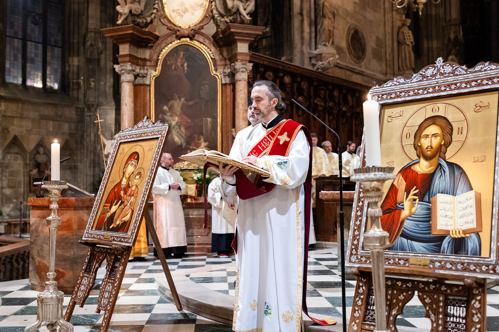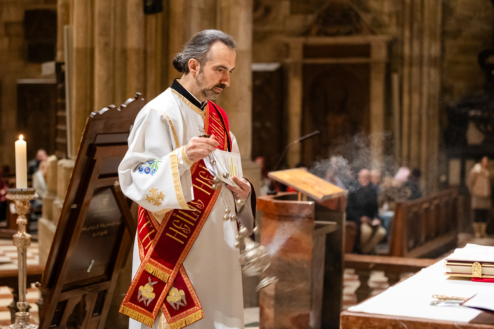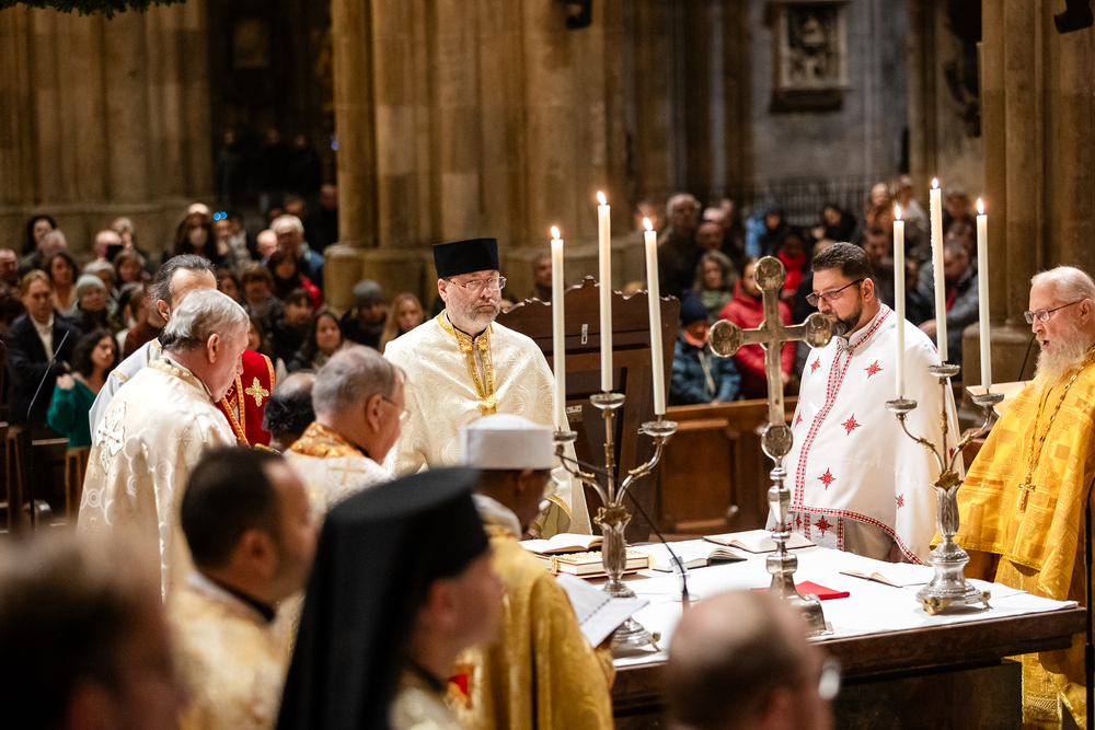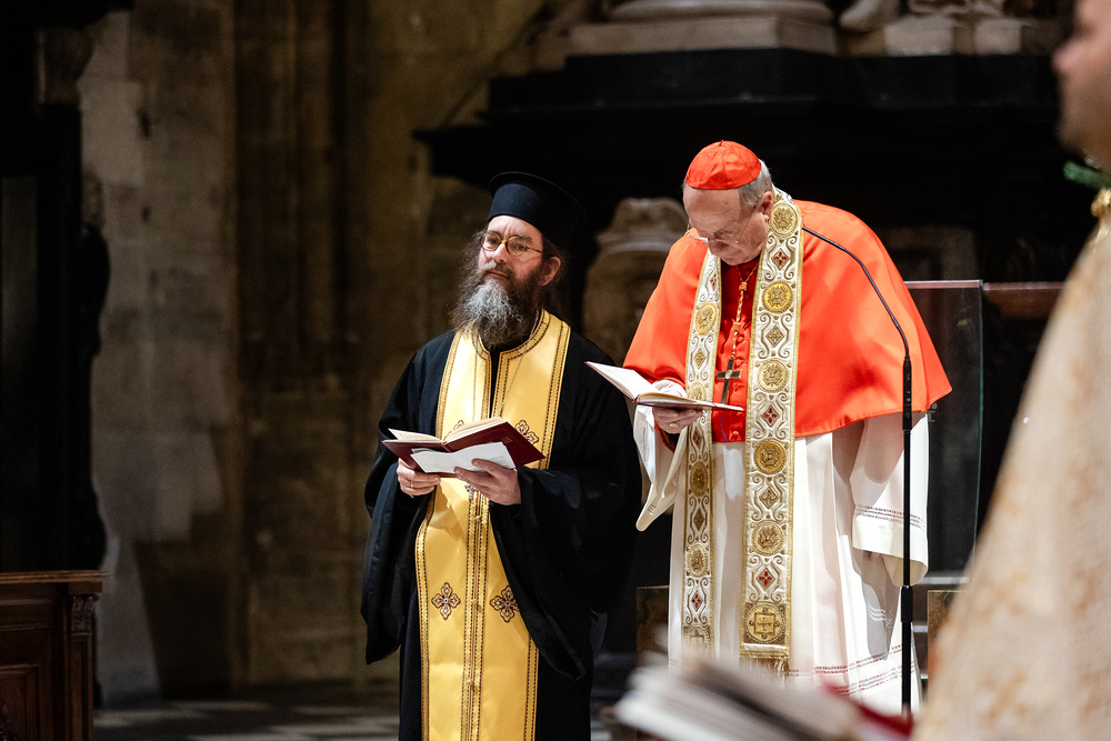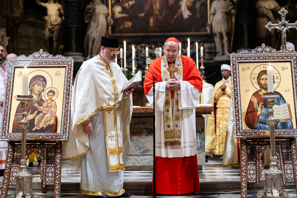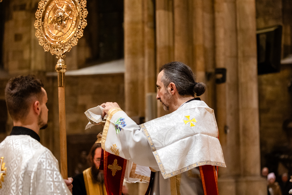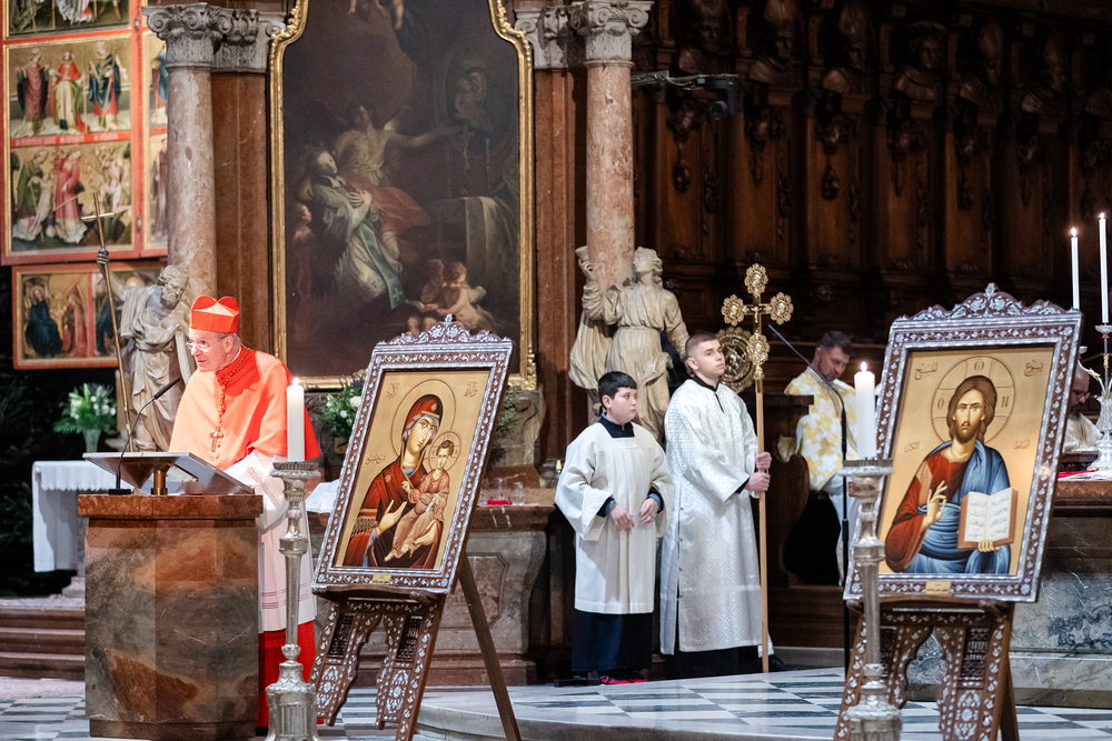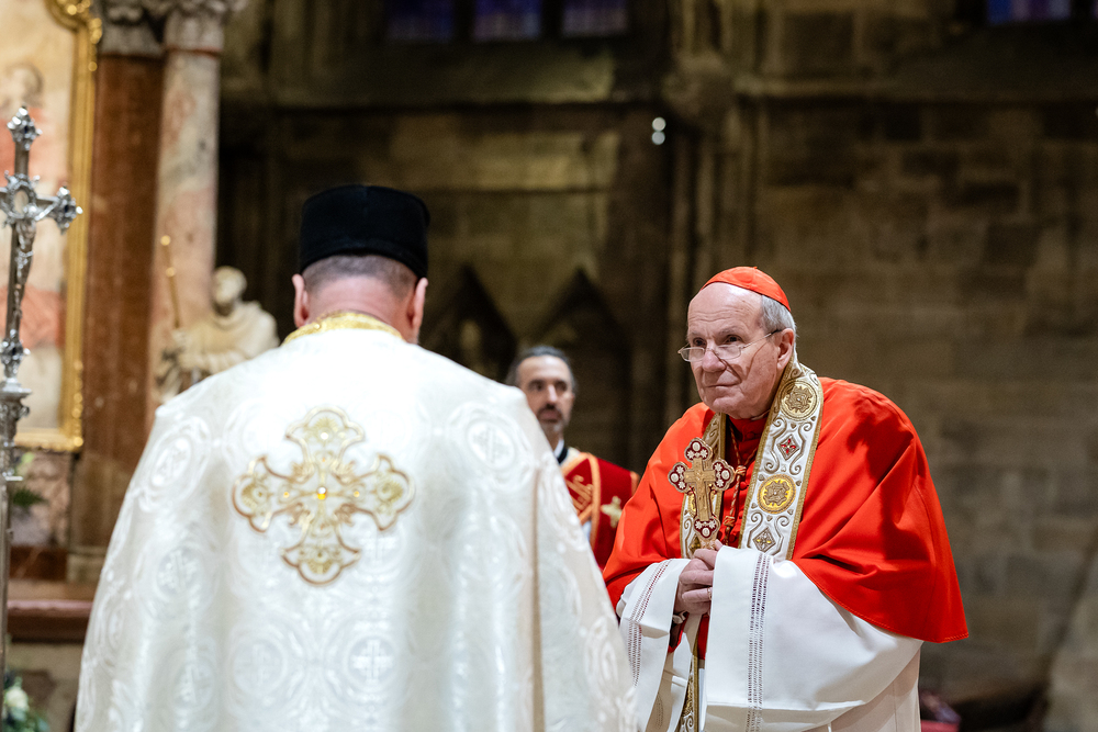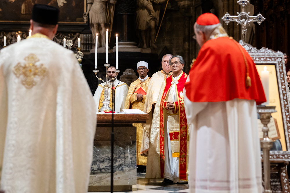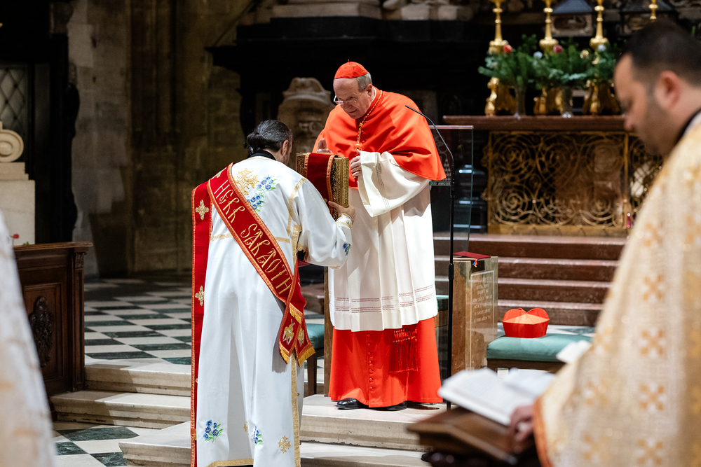 Priester und Gläubige aus allen Riten der in Österreich vertretenen katholischen Ostkirchen haben am Samstagabend im Wiener Stephansdom Kardinal Christoph Schönborn für dessen drei Jahrzehnte langen Hirtendienst gedankt. Der Wiener Erzbischof, für den angesichts seines 80. Geburtstags im Jänner demnächst ein Nachfolger ernannt werden dürfte, ist seit drei Jahrzehnten auch Ordinarius und somit Letztverantwortlicher der mit Rom verbundenen Kirchen. Deren Vertreter, angeführt vom zuständigen Generalvikar Yuriy Kolasa, würdigten Schönborns Verdienste bei einer vom Ostkirchenordinariat organisierten Feier im byzantinischen Ritus - der Göttlichen Liturgie des heiligen Johannes Chrysostomus. Wir waren mit der Kamera dabei.