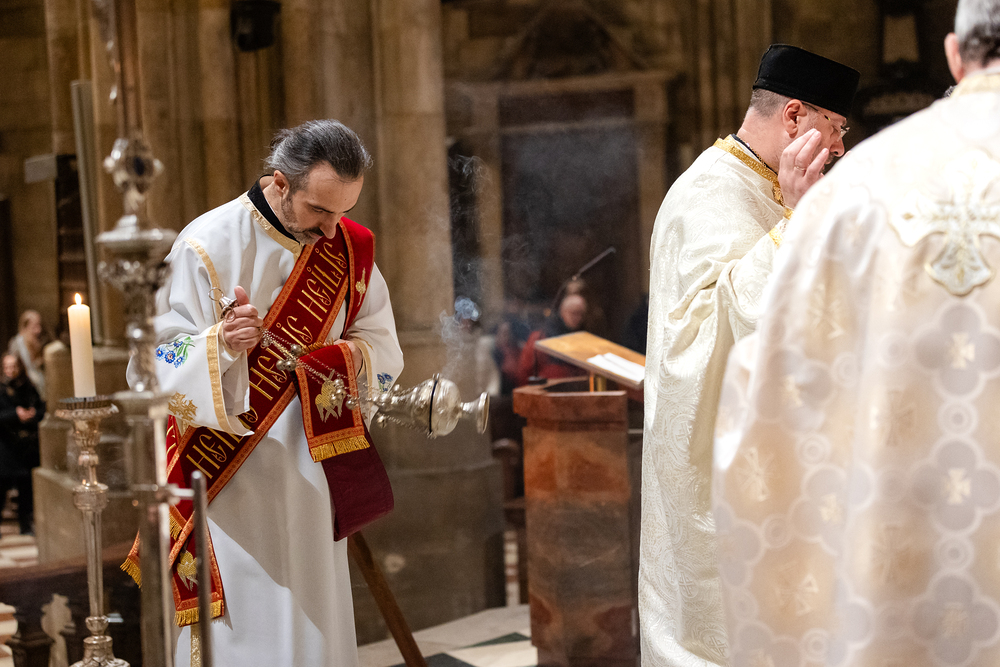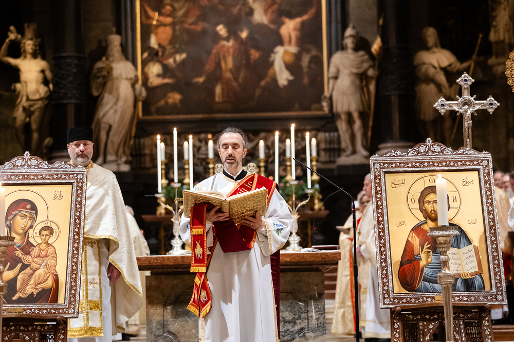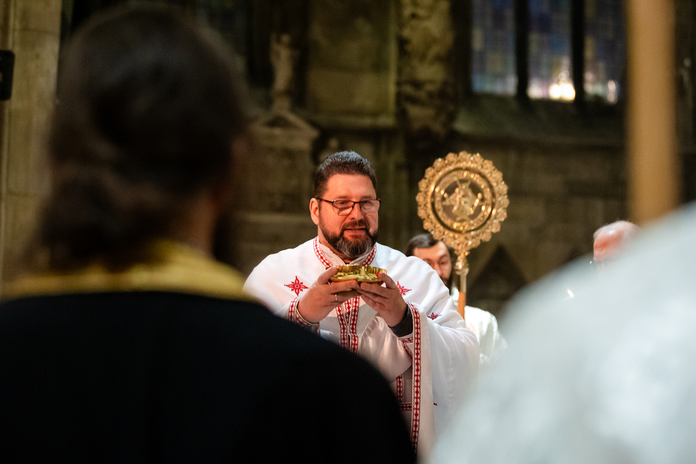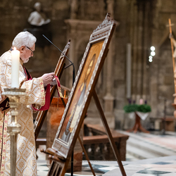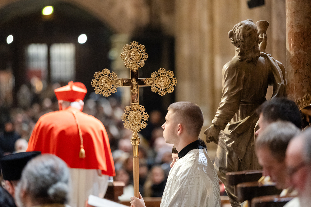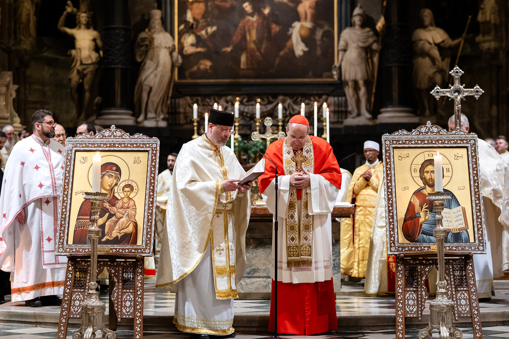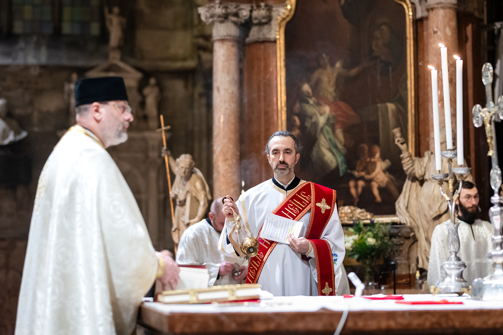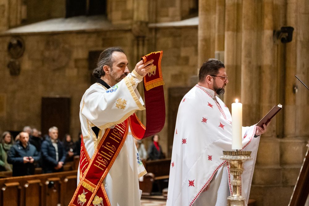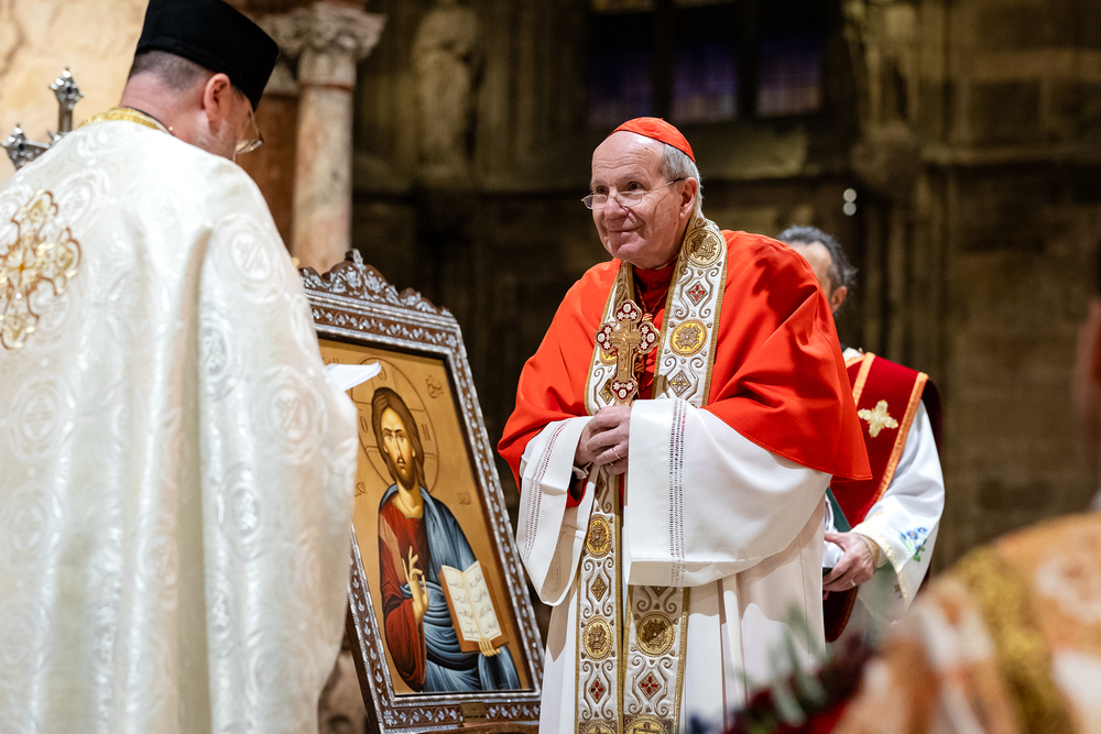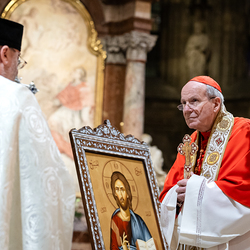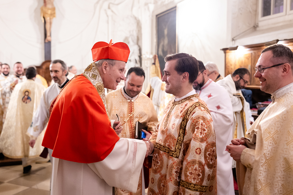 Priester und Gläubige aus allen Riten der in Österreich vertretenen katholischen Ostkirchen haben am Samstagabend im Wiener Stephansdom Kardinal Christoph Schönborn für dessen drei Jahrzehnte langen Hirtendienst gedankt. Der Wiener Erzbischof, für den angesichts seines 80. Geburtstags im Jänner demnächst ein Nachfolger ernannt werden dürfte, ist seit drei Jahrzehnten auch Ordinarius und somit Letztverantwortlicher der mit Rom verbundenen Kirchen. Deren Vertreter, angeführt vom zuständigen Generalvikar Yuriy Kolasa, würdigten Schönborns Verdienste bei einer vom Ostkirchenordinariat organisierten Feier im byzantinischen Ritus - der Göttlichen Liturgie des heiligen Johannes Chrysostomus. Wir waren mit der Kamera dabei.