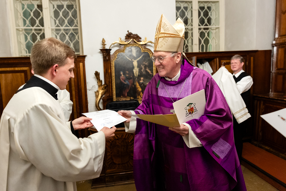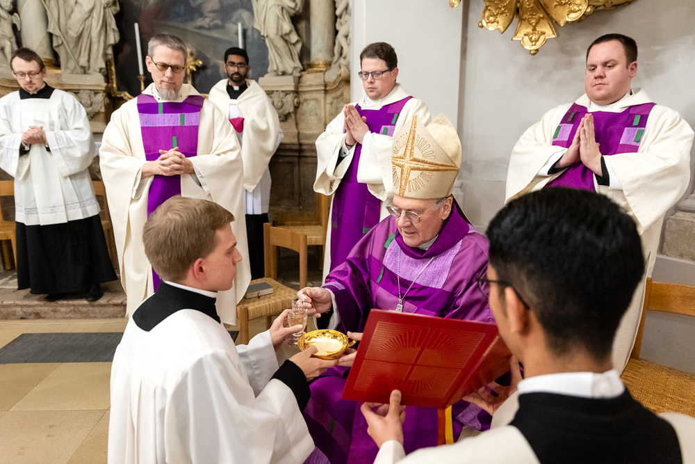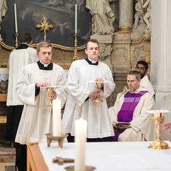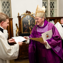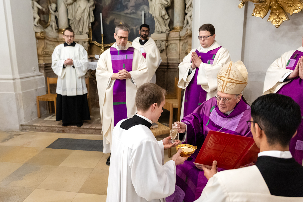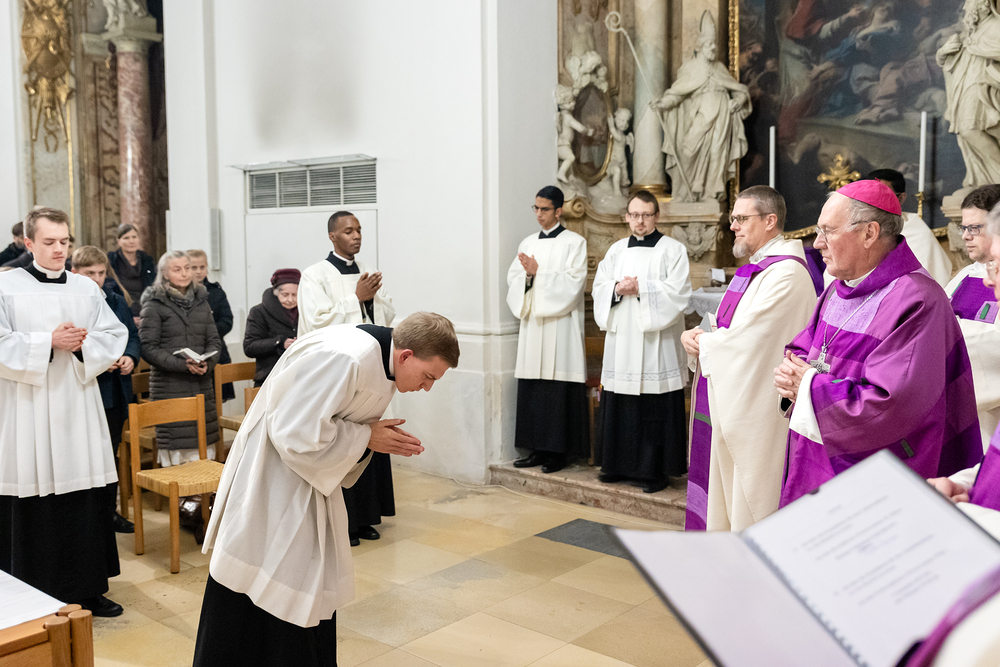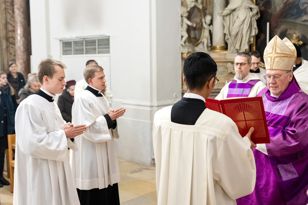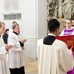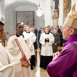 Impressionen der Beauftragungsfeier im Priesterseminar. Dabei wurden Constantin Mucha und Michael Ungrad als neue Akolyten für die Erzdiözese beauftragt. Für die Diözese St. Pölten wurde Michael Chijindum EJIEMEONU zum Lektor beauftragt. Wir waren mit der Kamera dabei.