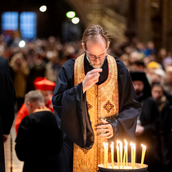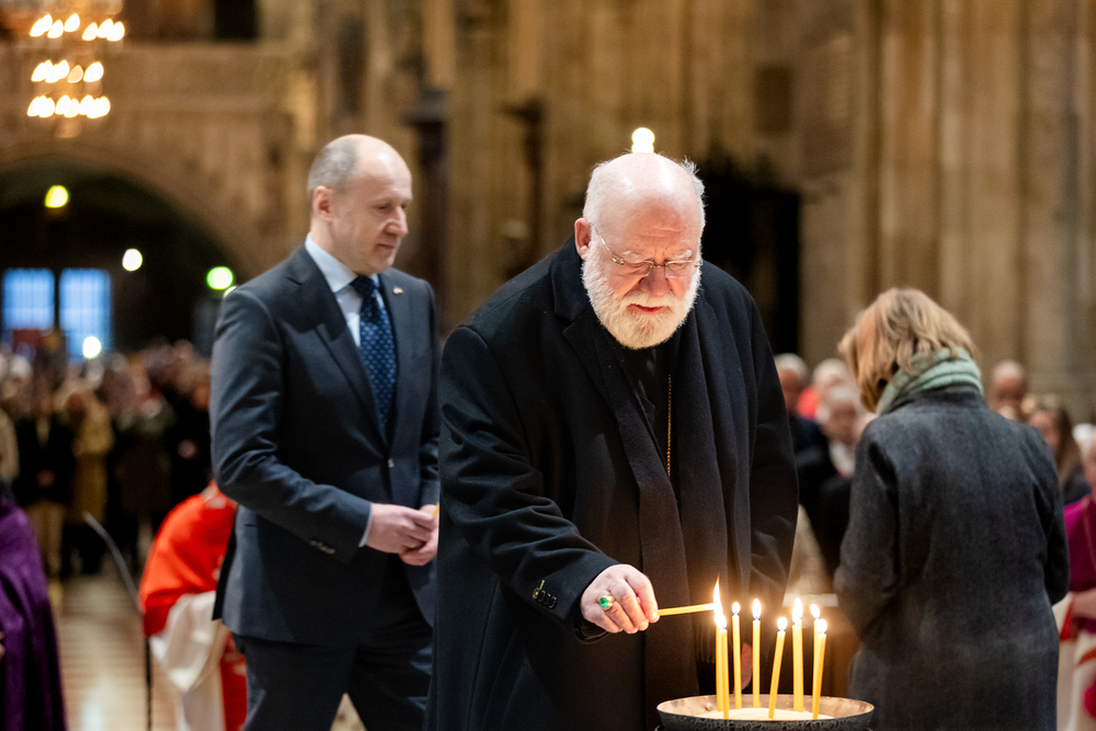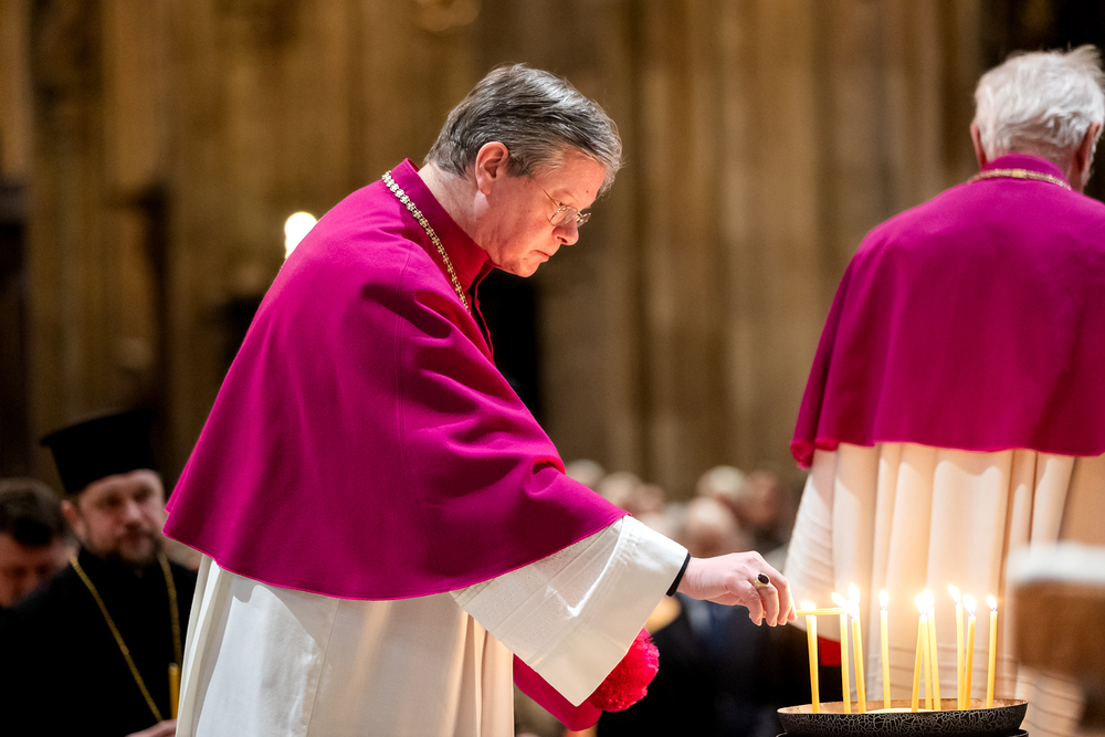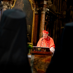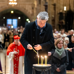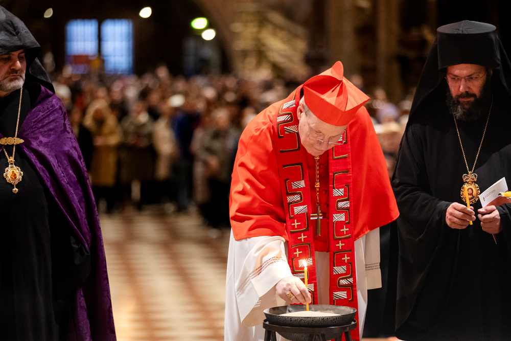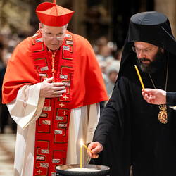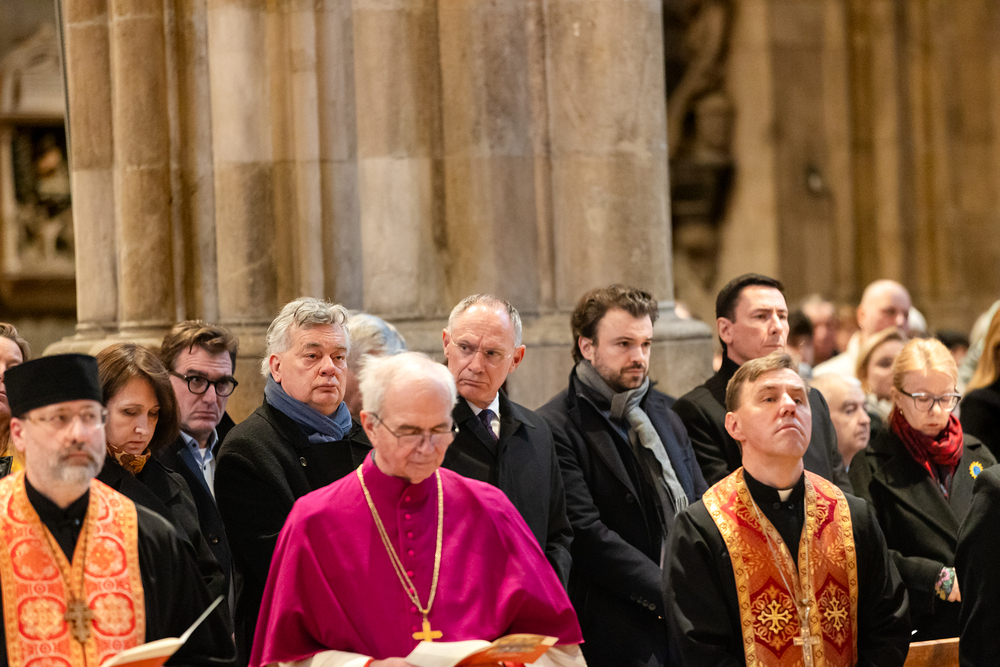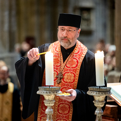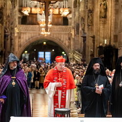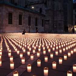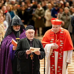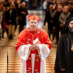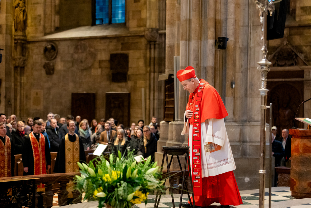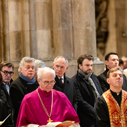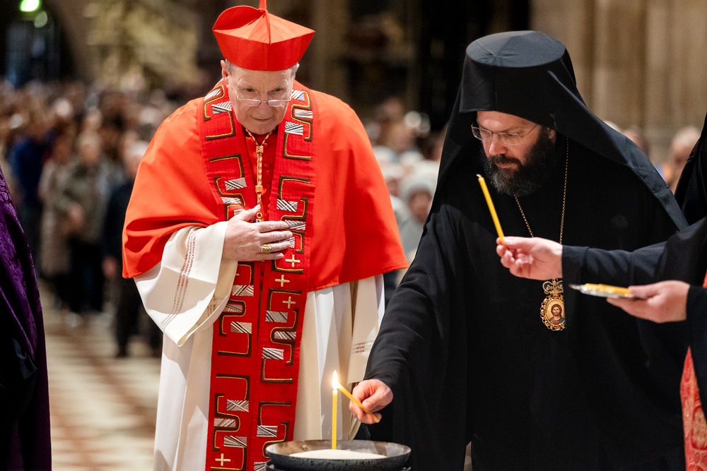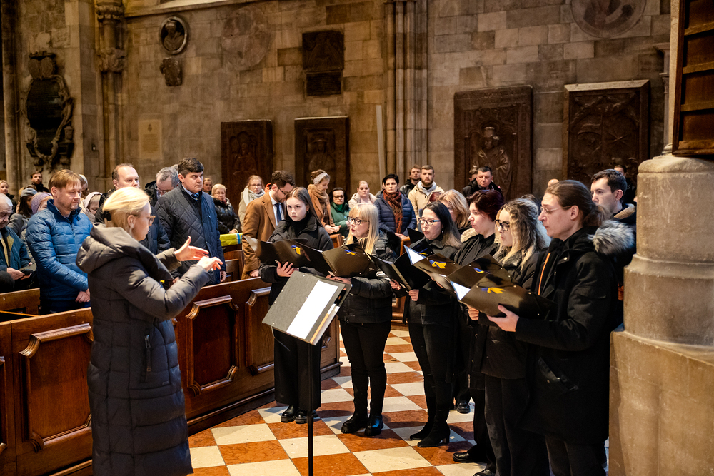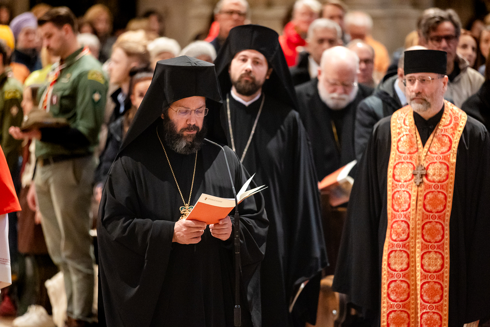 Zum dritten Jahrestag des russischen Angriffs auf die Ukraine fand im Wiener Stephansdom ein ökumenisches Friedensgebet statt, an dem Kardinal Christoph Schönborn teilnahm. Das Gebet wolle "die Stimmen der vielen Leidenden aufgreifen und ein Licht der Hoffnung inmitten der Dunkelheit entzünden. An dem Gottesdienst nahmen neben Kardinal Schönborn auch der päpstliche Gesandte in Österreich, Nuntius Erzbischof Pedro Lopez, der armenisch-apostolische Bischof und Vorsitzende des Ökumenischen Rates der Kirchen in Österreich, Tiran Petrosyan, der griechisch-orthodoxe Metropolit und Vorsitzende der Orthodoxen Bischofskonferenz in Österreich, Arsenios (Kardamakis), der für die ukrainischen Gläubigen in Österreich zuständige orthodoxe Weihbischof Maximos Rudko sowie Chorepiskopus Emanuel Aydin von der Syrisch-Orthodoxen Kirche teil; weiters etwa auch Ostkirchen-Generalvikar Yurij Kolasa, der Wiener Weihbischof Franz Scharl und Domdekan Rudolf Prokschi. Desweiteren erinnerte die Caritas bei einem Lichtermeer aus Tausenden auf dem Wiener Stephansplatz entzündeten Kerzen an das Schicksal der Menschen im Ukrainekrieg.Wir waren mit der Kamera dabei.