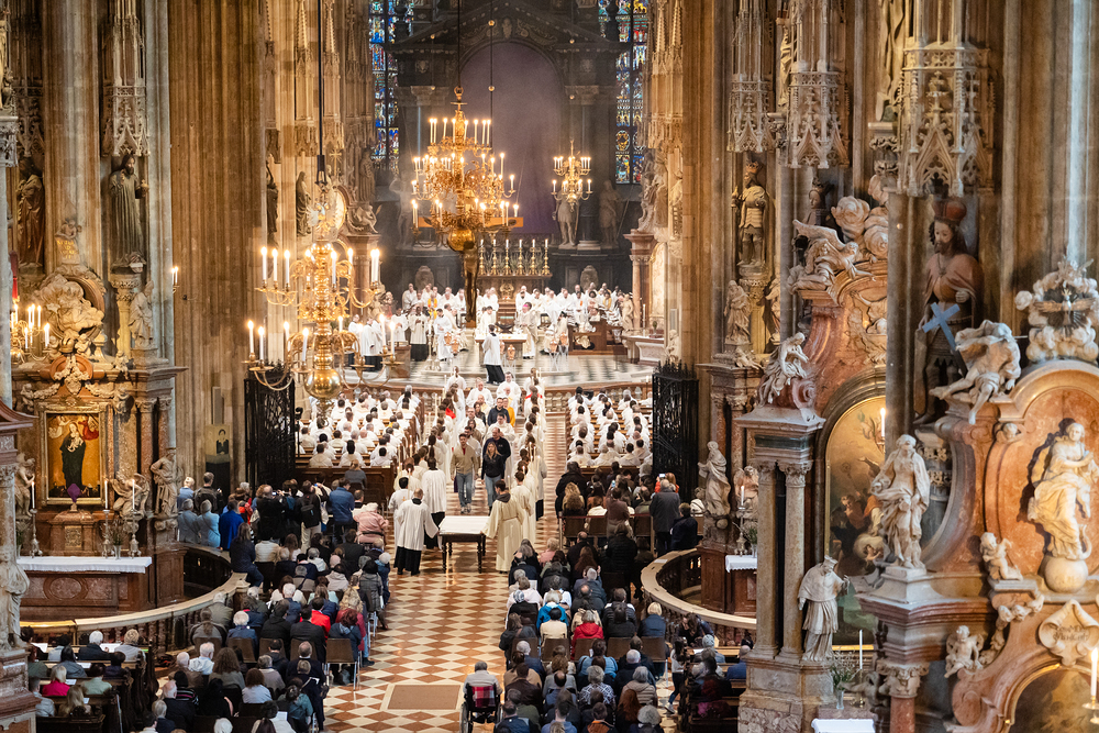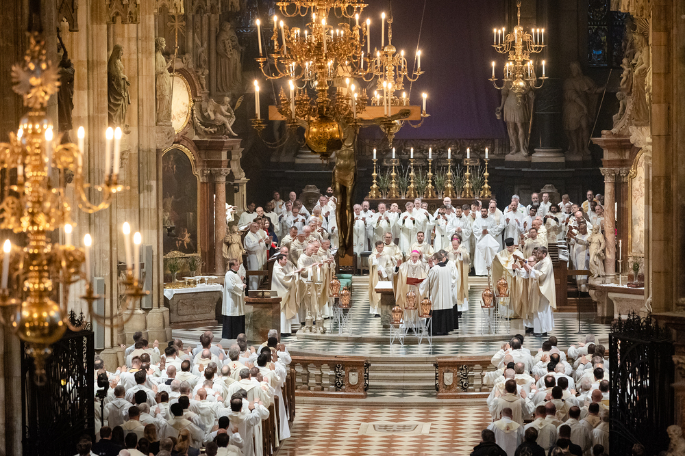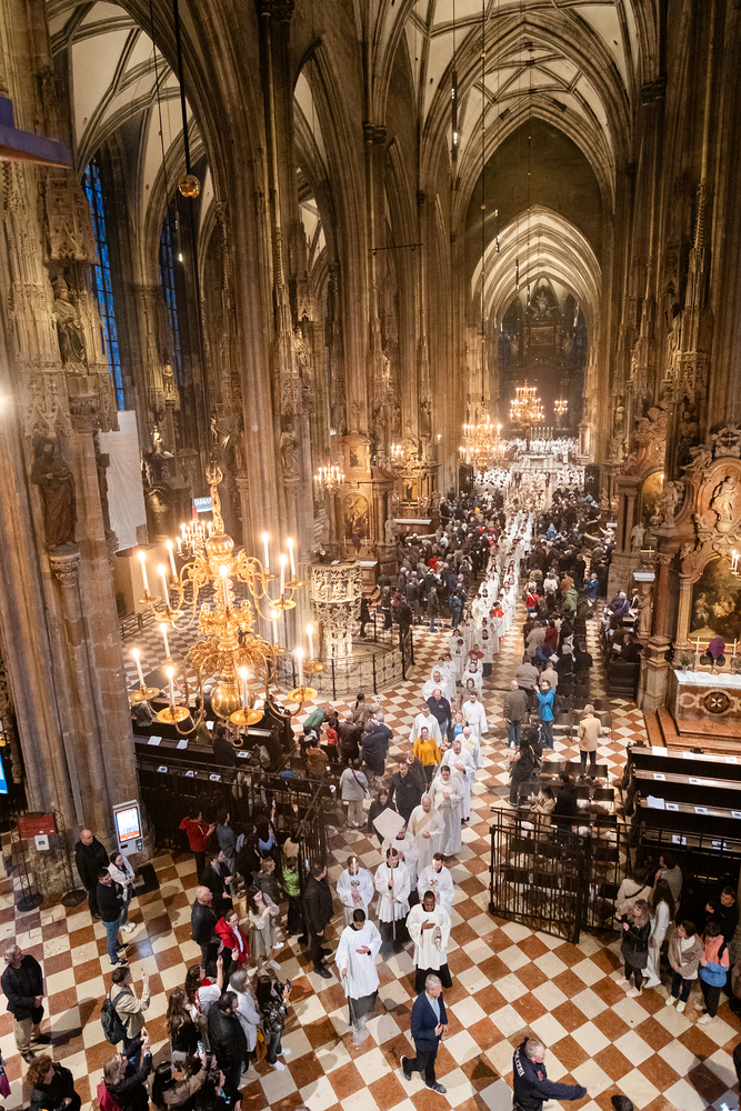 Die Chrisammesse, jährlich in der vorösterlichen Bußzeit gefeiert, ist ein zentrales Ereignis im katholischen Kirchenjahr. Hier weiht der Bischof die heiligen Öle für Sakramente und Sakramentalien. In Wien leiteten Apostolischer Administrator Josef Grünwidl und Weihbischof Franz Scharl gemeinsam die Feier - wir waren mit der Kamera dabei.