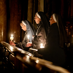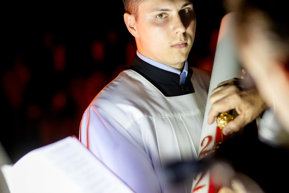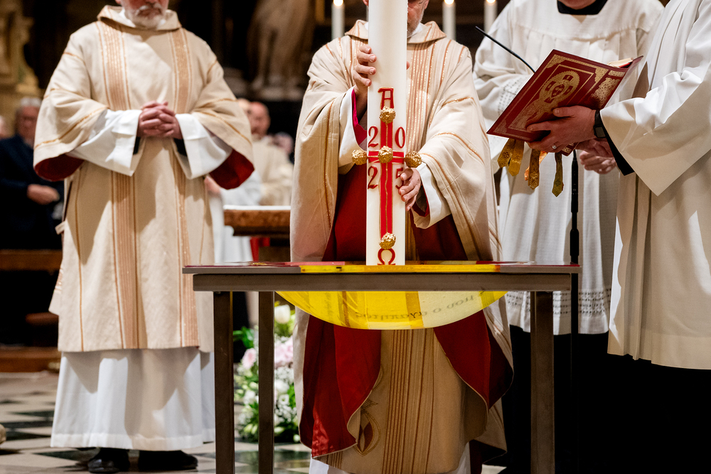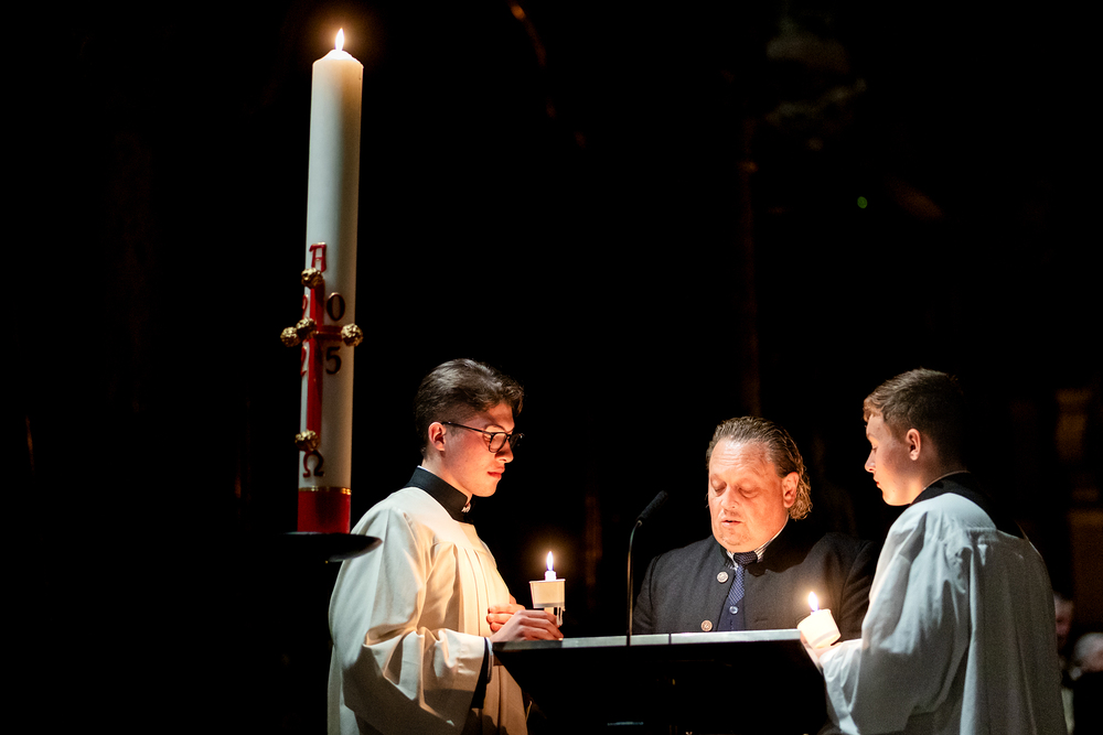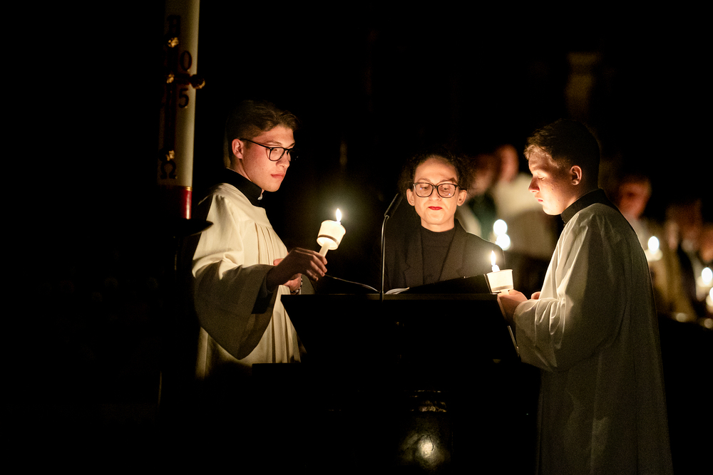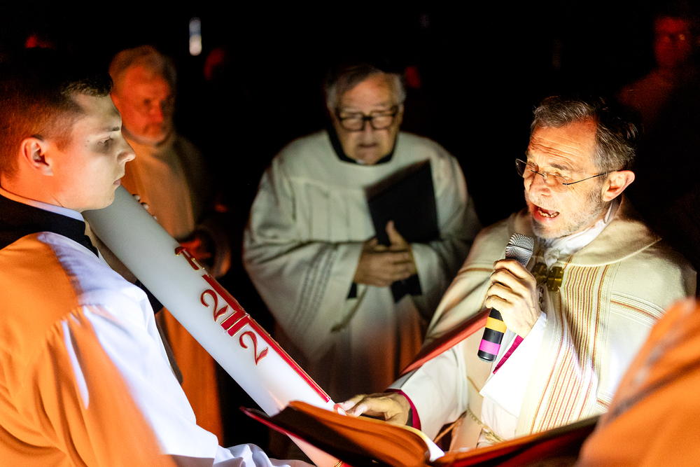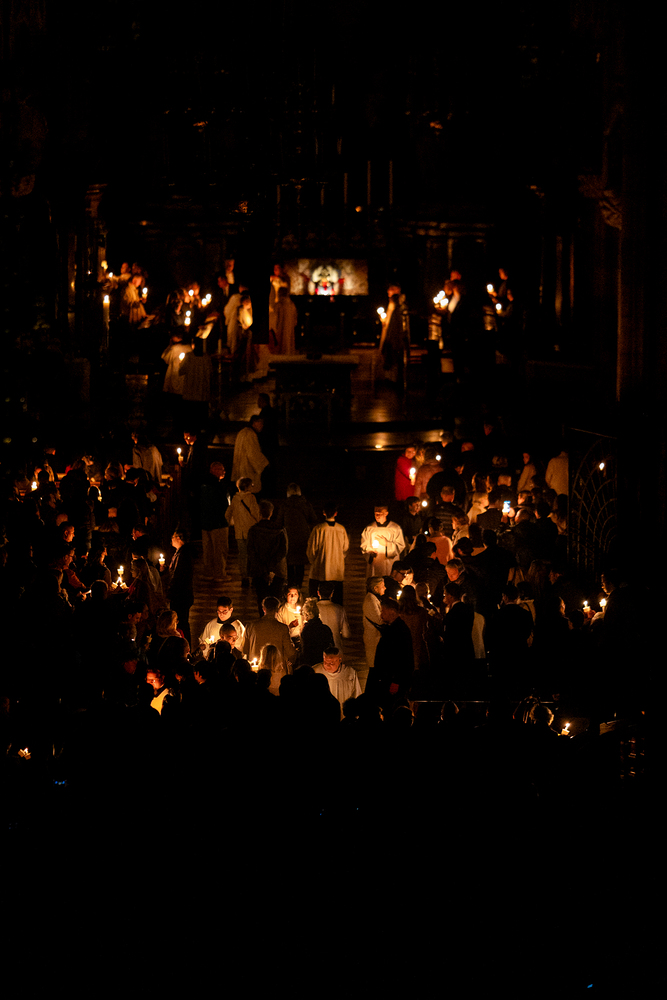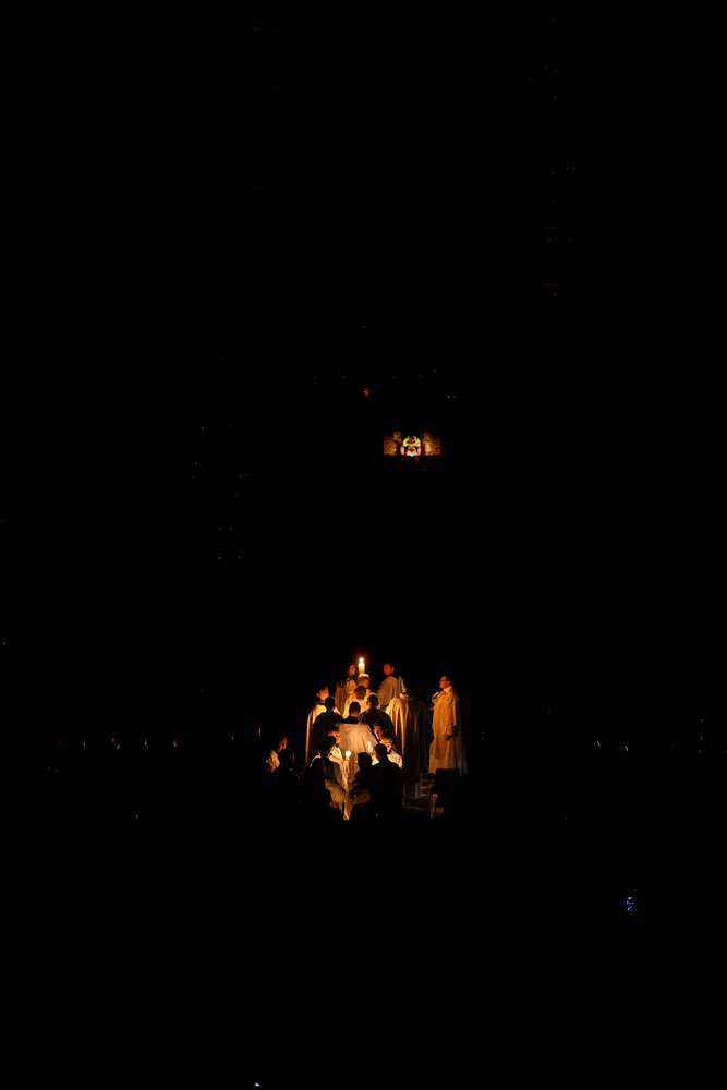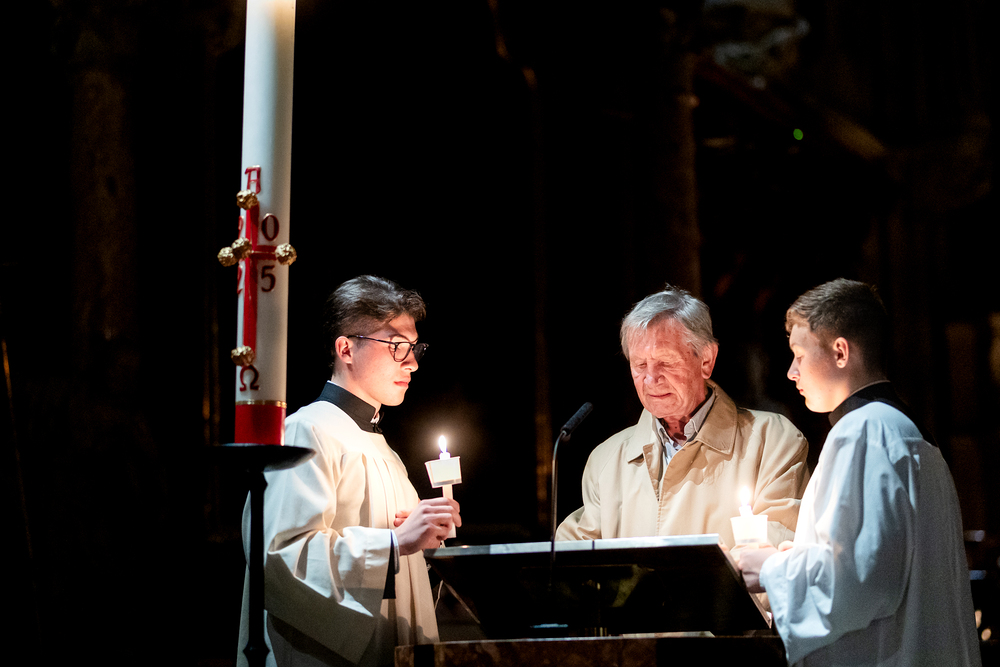 Die Osternachtsfeier im Stephansdom in Wien ist die heiligste Liturgie des Kirchenjahres, in der die Auferstehung Jesu Christi in einer feierlichen Vigil mit Wortgottesdienst, Tauffeier und Eucharistie gefeiert wird. In der Dunkelheit beginnt die Feier mit der Segnung des Osterfeuers und der Osterkerze, deren Licht sich als Zeichen des auferstandenen Christus im ganzen Dom ausbreitet.