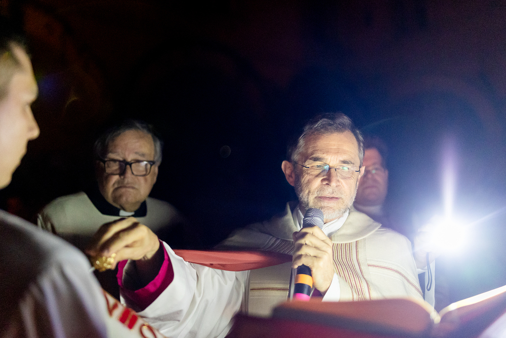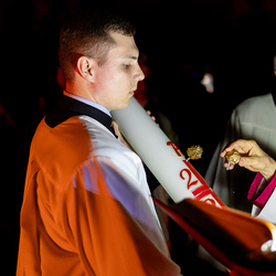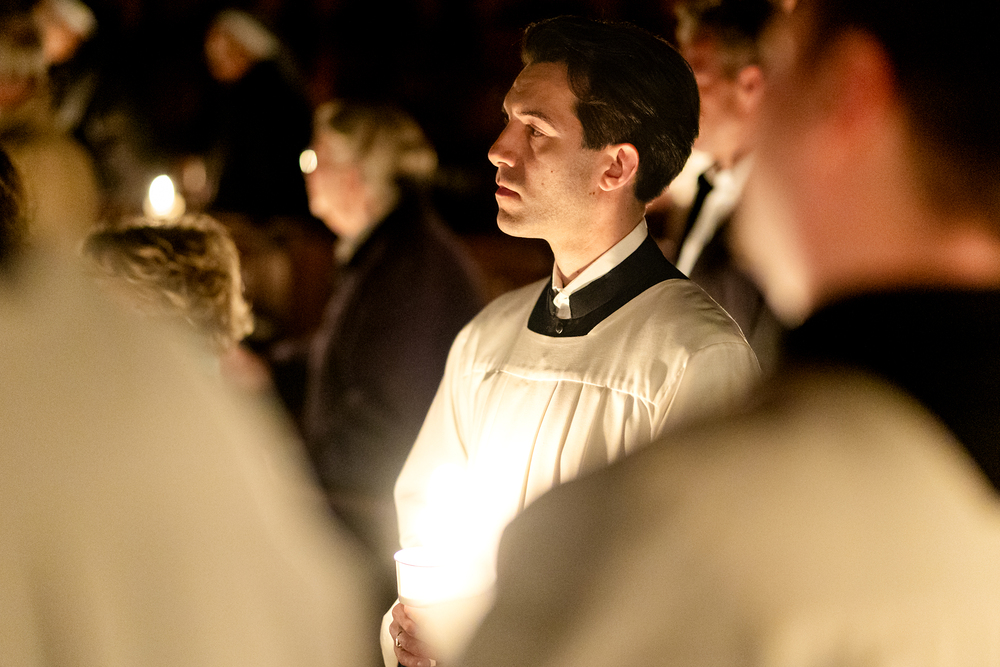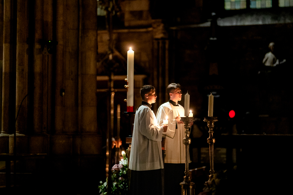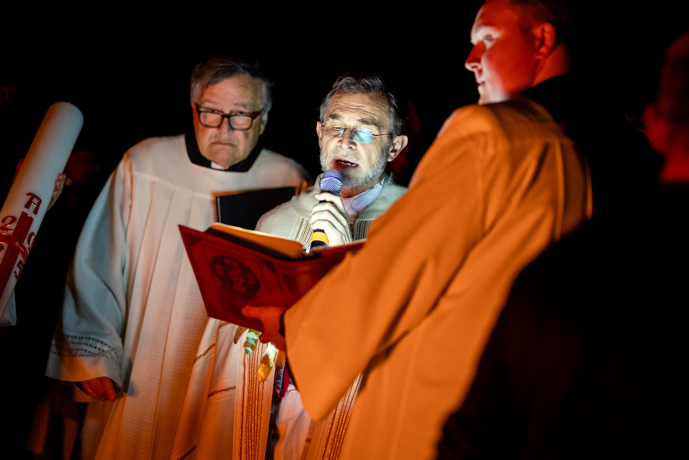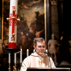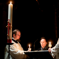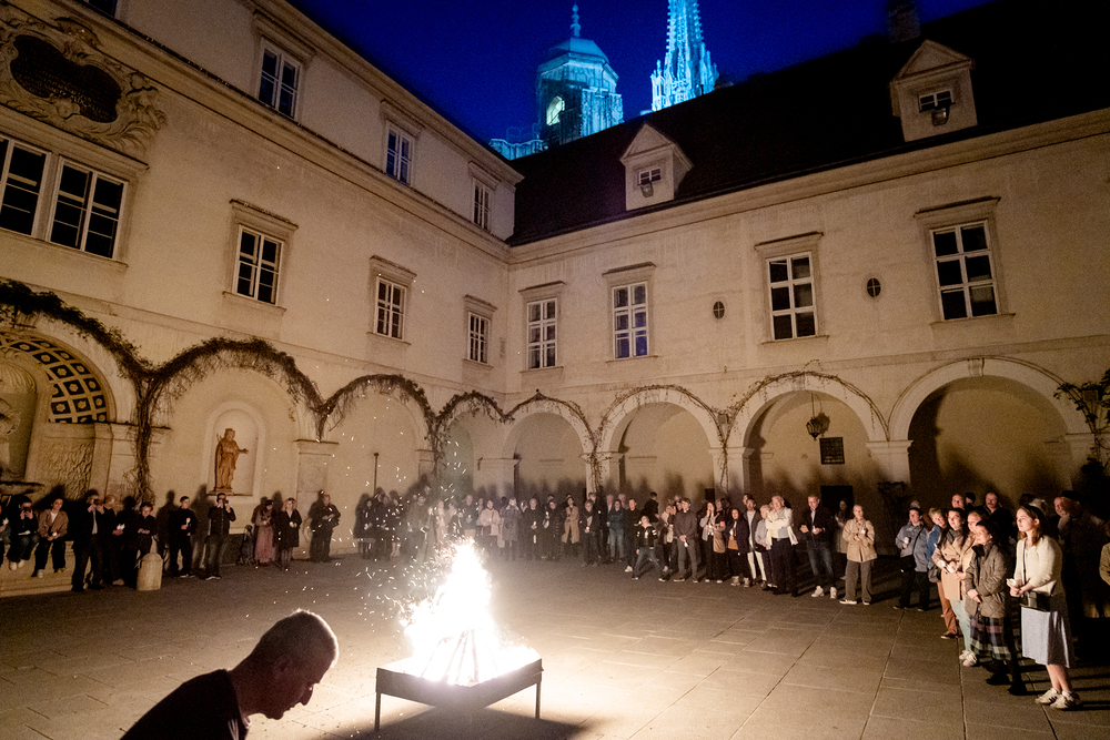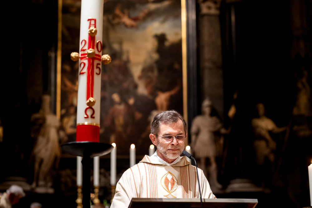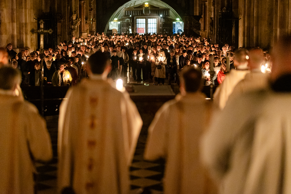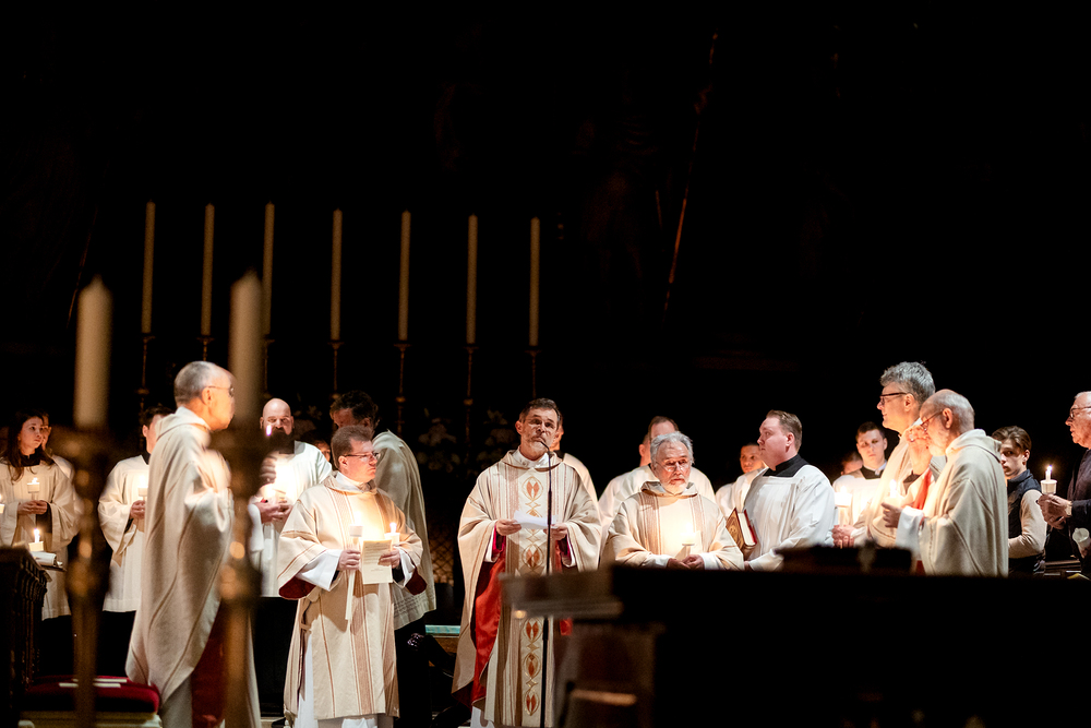 Die Osternachtsfeier im Stephansdom in Wien ist die heiligste Liturgie des Kirchenjahres, in der die Auferstehung Jesu Christi in einer feierlichen Vigil mit Wortgottesdienst, Tauffeier und Eucharistie gefeiert wird. In der Dunkelheit beginnt die Feier mit der Segnung des Osterfeuers und der Osterkerze, deren Licht sich als Zeichen des auferstandenen Christus im ganzen Dom ausbreitet.
