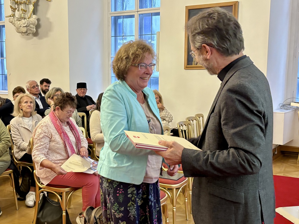 Time to say goodbye: Es ist eine gute Tradition in der Erzdiözese Wien, jedes Jahr die frisch gebackenen Pensionistinnen und Pensionisten zu verabschieden und ihr Engagement zu würdigen. Am Donnerstag, 25. September 2025, waren unsere ehemaligen Mitarbeiterinnen und Mitarbeiter zu einer Führung im Dom Museum Wien und einem anschließenden Festakt im Festsaal des Erzbischöflichen Palais eingeladen. Die Verabschiedung in den Ruhestand wurde von flotten Klängen junger Musikerinnen des „Trio Terzetto“ begleitet – darunter ein schwungvoller Tango von Astor Piazzolla.