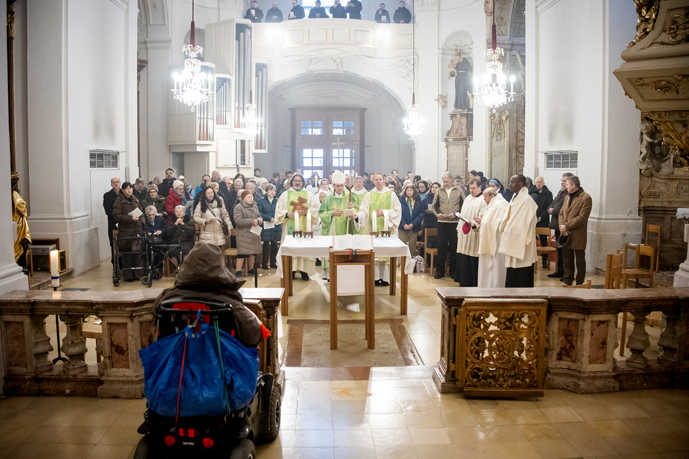 Seine erste Messe als Erzbischof feierte Josef Grünwidl am Sonntag, 25. Jänner 2026, mit 100 Armutsbetroffenen. Danach lud er Sie zu einem gemeinsamen Mittagessen ein. Wir waren mit der Kamera dabei.