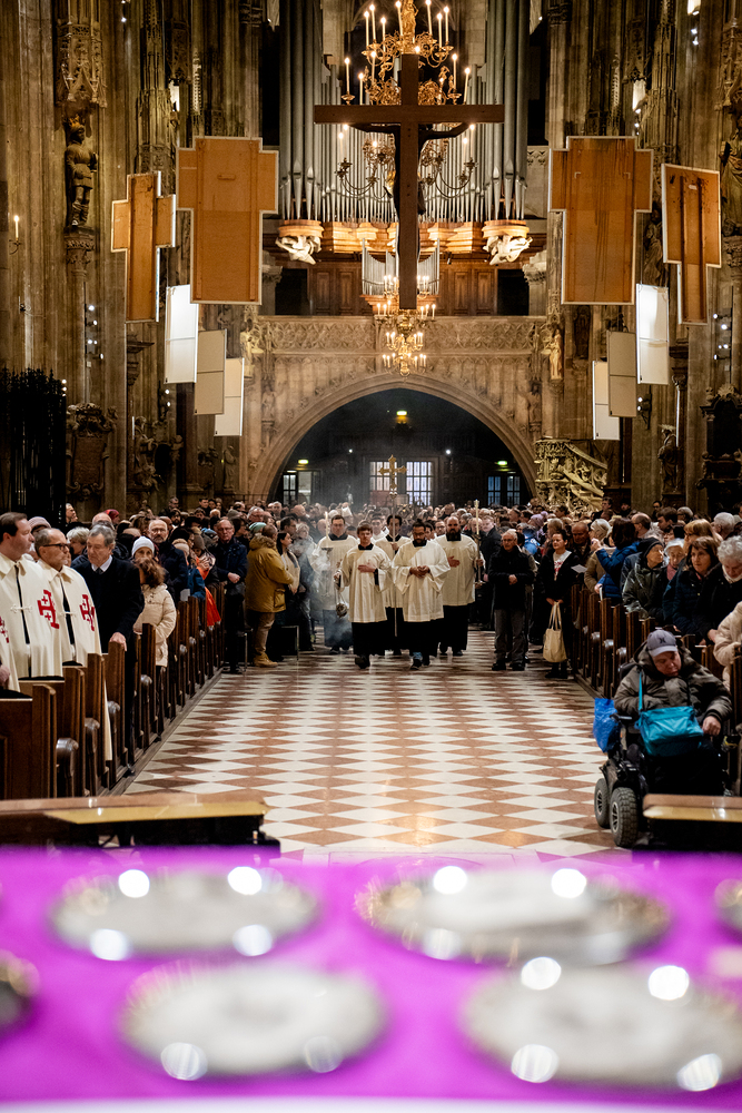 Erzbischof Josef Grünwidl hat zu Beginn der Fastenzeit das Kreuz als Gerüst und Grundform christlicher Existenz bezeichnet. Er eröffnete die Fastenzeit mit der Feier des Aschermittwochs gemeinsam mit zahlreichen Gläubigen im Stephansdom. Wir waren mit der Kamera dabei.