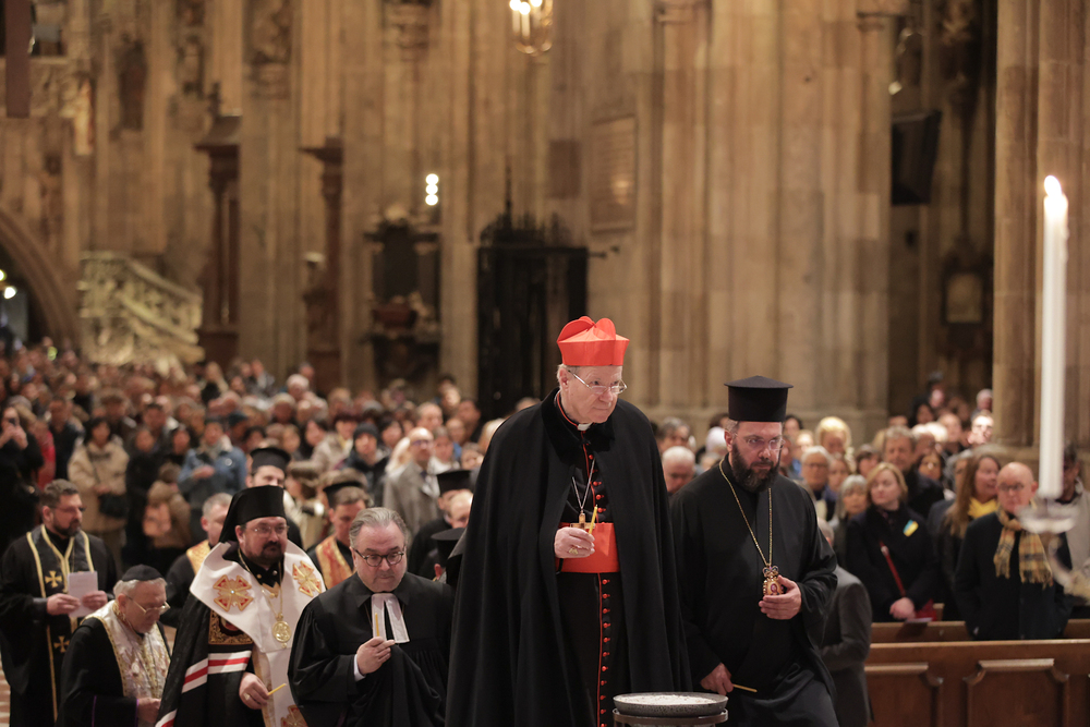 Anlässlich des zweiten Jahrestages des Ukraine-Krieges wurde im Stephansdom in Wien ein ökumenisches Friedensgebet abgehalten.