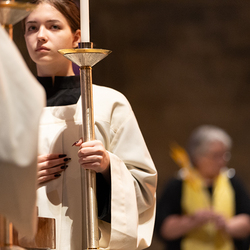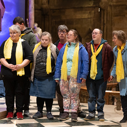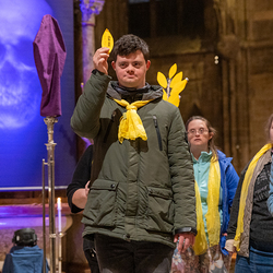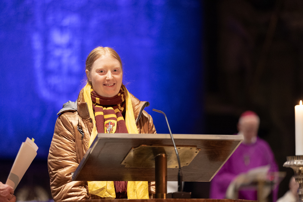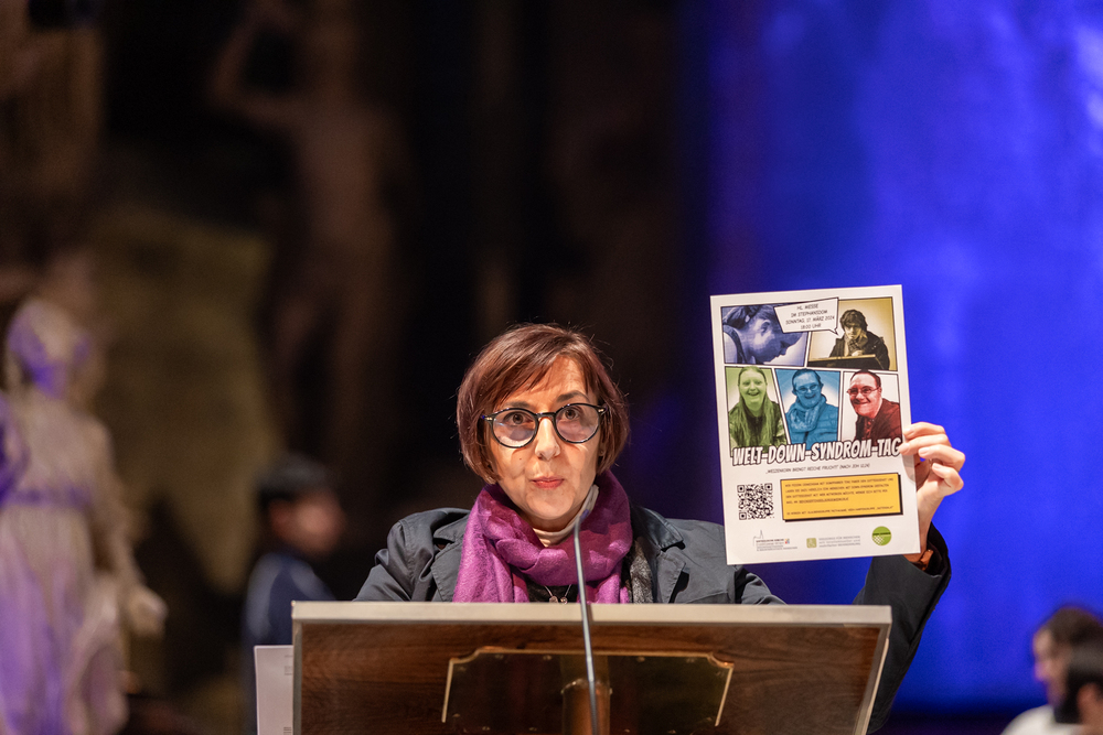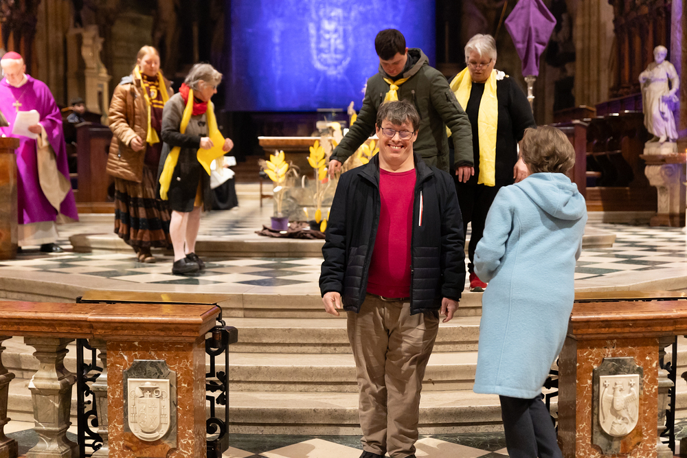 Am Sonntag, 17. März 2024, feierten Menschen mit Down-Syndrom einen Gottesdienst im Stephansdom. Anlass dazu war der Welt-Down-Syndrom-Tag am 21. März. Unter dem Motto "Unsere Heldinnen und Helden" organisierte die Seelsorge für Menschen mit intellektueller und mehrfacher Behinderung der Erzdiözese Wien die Feier bereits zum vierzehnten Mal. Die Glaubensgruppe Faith4U&Me, die Veeh-Harfen-Gruppe "Saitensalat" und der Kultur- und Bildungsverein "Ich bin O.K." gestalteten den Gottesdienst musikalisch, mit Tanz und übersetzten die Botschaft des Evangeliums ("Das Weizenkorn bringt reiche Frucht") in leicht verständlicher Sprache sowie in Pantomime.