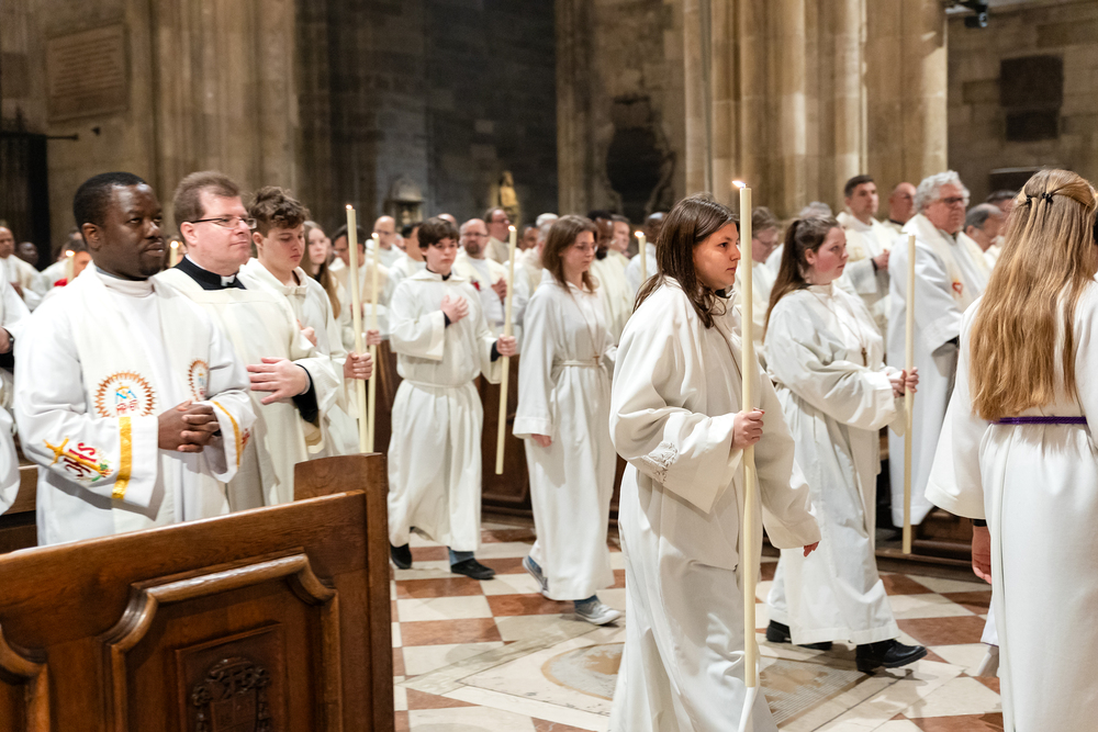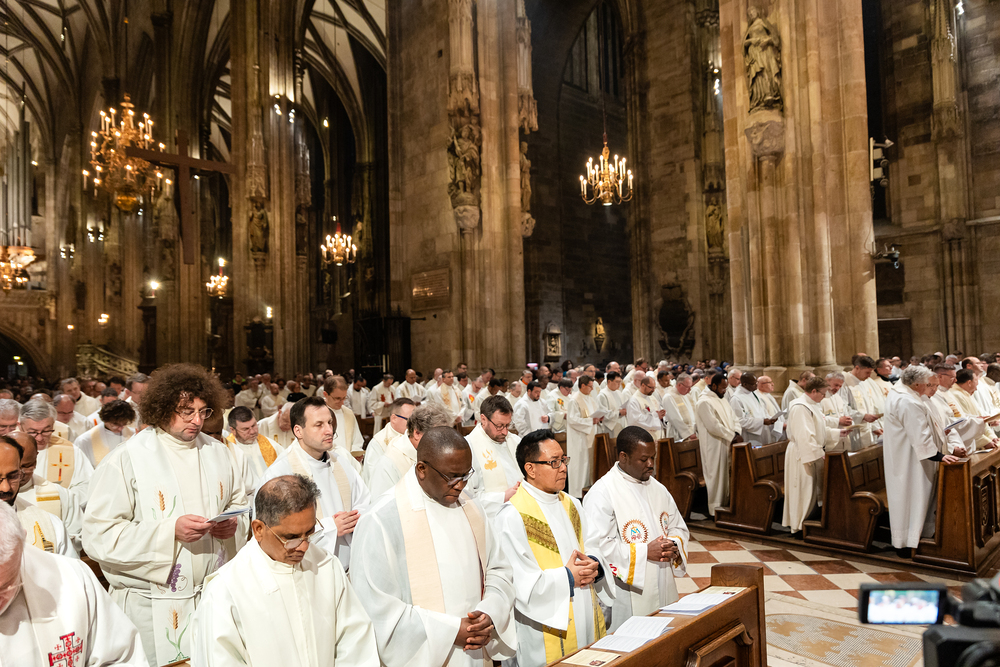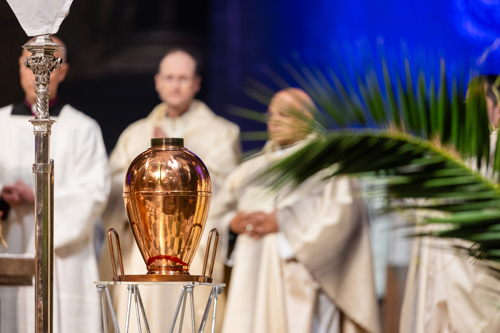 Die Weihe der Heiligen Öle in der Chrisammesse versammelt zu Beginn der Karwoche Priester, Diakone und Gläubige der Diözesen im Stephansdom. Die Priester und Diakone erneuern dabei ihr Versprechen für den Dienst in der Kirche, während die anwesenden Gläubigen die Weihe der Heiligen Öle mitfeiern. Diese Öle werden während des Jahres in den Pfarreien bei Taufen, Firmungen und Krankensalbungen verwendet.
