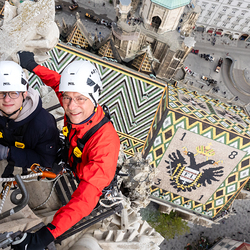 Im Vorfeld des Gottesdienstes bestieg Maturant Felix, der Gewinner des Preisausschreibens, mit Dompfarrer Toni Faber den 137 Meter hohen Südturm des Stephansdoms – ein Symbol für die Matura, die letzten Meter der Schulzeit. Wir haben die beiden mit der Kamera begleitet.