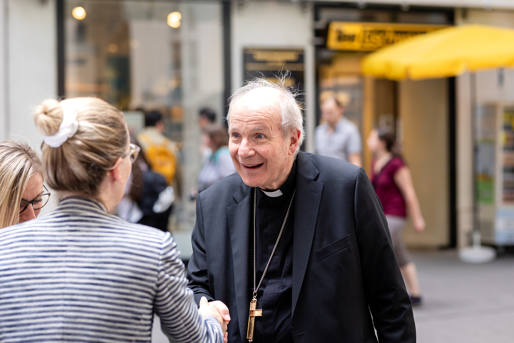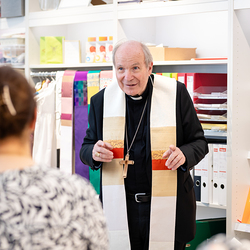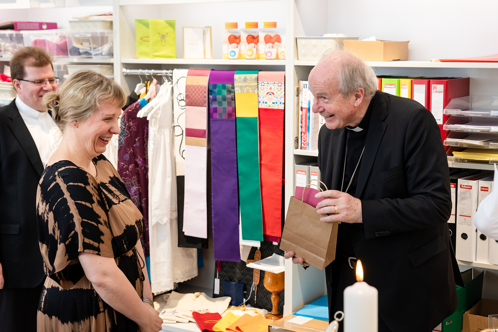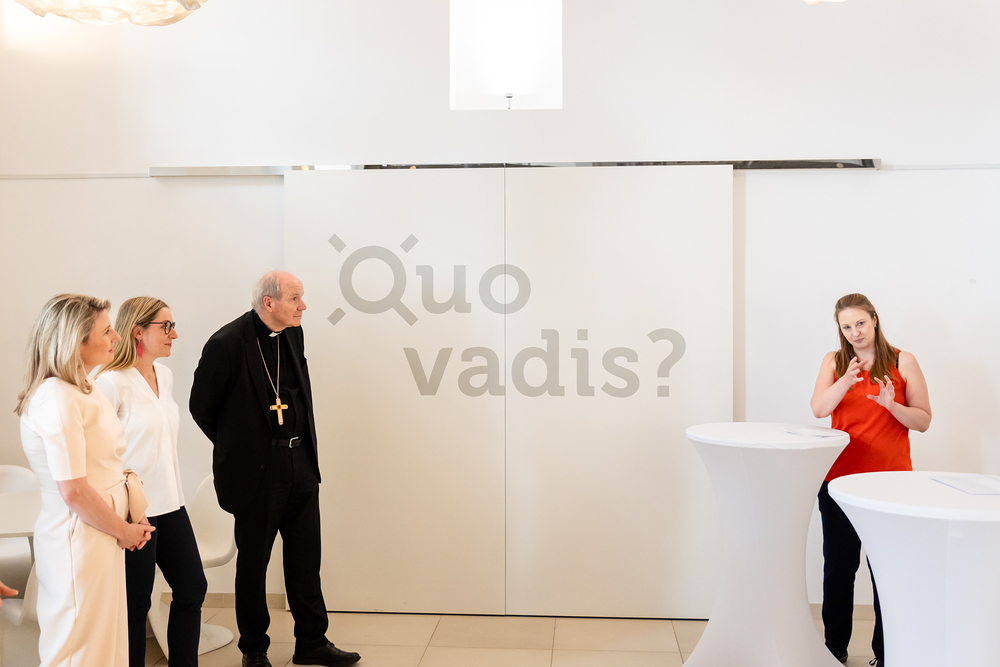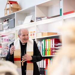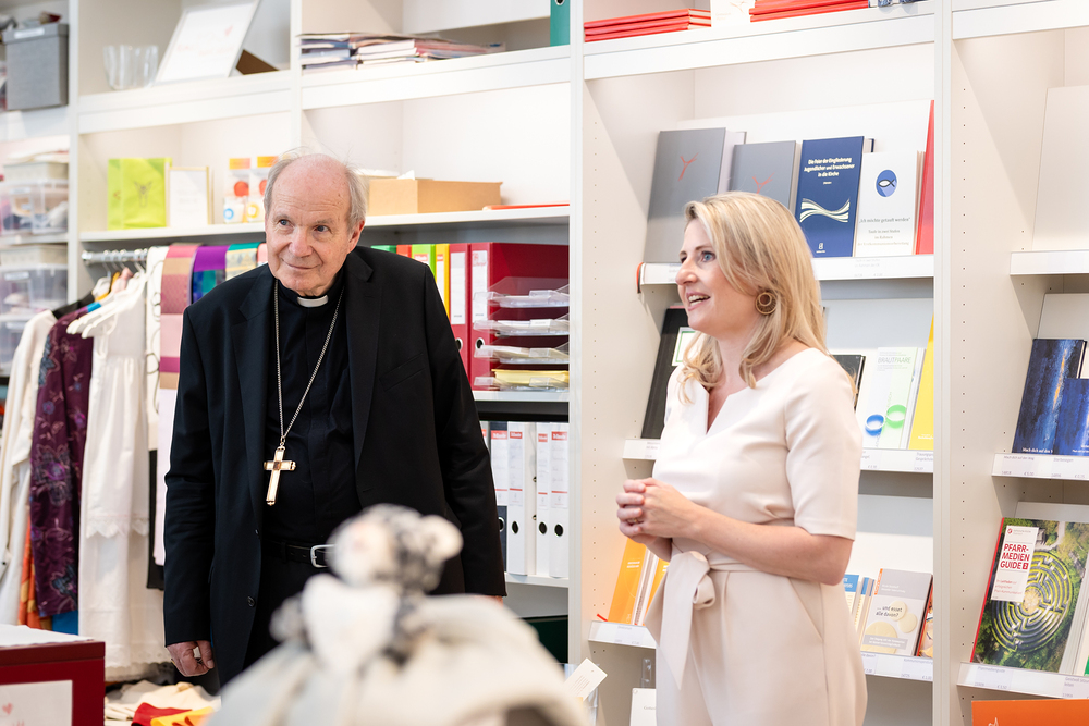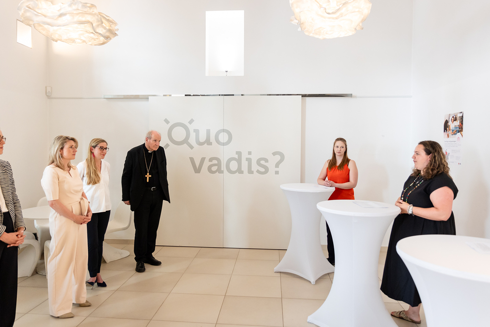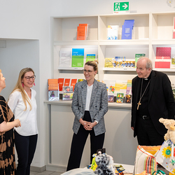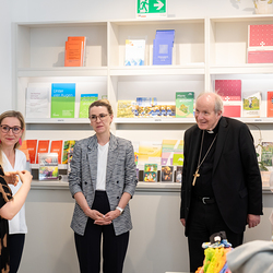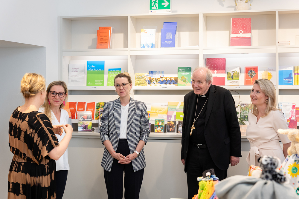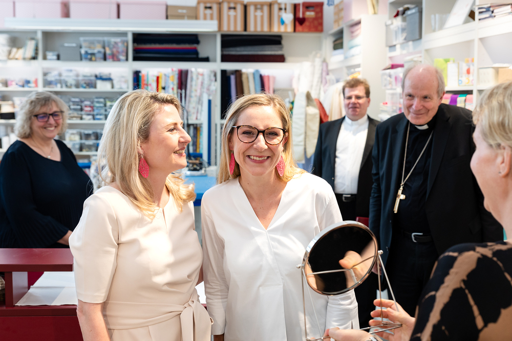 Kardinal Schönborn segnete heute den neuen Standort von Mamas Werkstatt der St. Elisbabethstifung im Zwettlerhof im Herzen Wiens anlässlich des Besuchs der von BM Raab. Mamas Werkstatt ist ein Projekt, dass alleinerziehende Frauen durch gezielte, individuelle Förderung ihrer Fähigkeiten in die Eigenständigkeit begleiten soll. Wir waren mit der Kamera dabei.